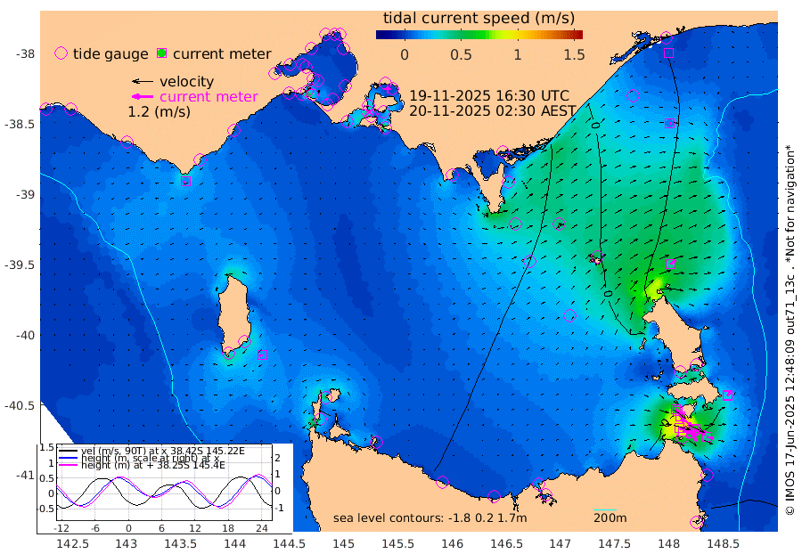 70cm/s 114T +9cm/s rms + 16cm/s 128T. CWTb1 63m 62cm/s 106T +8cm/s rms + 14cm/s 130T. C1A1 56m 88cm/s 104T +8cm/s rms + 12cm/s 12T. C1A3 27m 53cm/s 126T +0cm/s rms + 0cm/s 0T. CW1 32m 90cm/s 130T +11cm/s rms + 9cm/s 121T. CW2A1 44m 54cm/s 144T +7cm/s rms + 12cm/s 156T. CW2A2 44m 71cm/s 151T +7cm/s rms + 4cm/s 115T. CW3 33m 96cm/s 108T +9cm/s rms + 6cm/s 84T. CW4A1 30m 40cm/s 99T +5cm/s rms + 7cm/s 87T. CW4A2 36m 17cm/s 36T +9cm/s rms + 16cm/s 35T. CW6A1 37m 24cm/s 49T +6cm/s rms + 4cm/s 94T. CW6A2 31m 39cm/s 57T +4cm/s rms + 6cm/s 137T. BASS-CS91 47m 11cm/s 94T +11cm/s rms + 3cm/s -58T. BASS-CS91 70m 2cm/s -157T +10cm/s rms + 1cm/s 137T. BASS-CS91 47m 17cm/s -125T +10cm/s rms + 3cm/s 42T. BASS-CS91 53m 15cm/s -111T +8cm/s rms + 2cm/s 81T. BASS-CS91 64m 1cm/s 91T +6cm/s rms + 5cm/s 151T. BASS-UN91 115m 2cm/s -120T +4cm/s rms + 3cm/s 111T. Tas91 UNSW Mooring #1 65m 95m -13cm Lakes Entrance (Outer) -6cm Barracouta Platform 11cm Hogan Island 36cm Port Welshpool Pier 24cm Rabbit Island 21cm East Moncoeur Island 9cm Curtis Island 26cm Waratah Bay 54cm San Remo 56cm Elizabeth Island 72cm Bouchier Channel 73cm Tooradin 53cm Cowes Jetty 53cm Western Port (Stony Point) 71cm Western Port (Sandy Point) 31cm Flinders Jetty 17cm Mornington 18cm Sandringham 16cm Rosebud Jetty 18cm Hovell Pile 17cm South Channel 21cm Point Lonsdale 17cm Queenscliff 18cm West Channel Pile 21cm Barwon Heads 18cm St Leonards 21cm Point Richards (Corio Bay) 20cm Point Richards Channel 22cm Geelong 20cm Werribee 19cm Altona 20cm Wilson Spit 20cm Melbourne (Williamstown) 20cm St Kilda 27cm Lorne 27cm Apollo Bay -5cm Garden Cove -4cm Bass Pyramid 34cm Seal Bay 33cm King Island (Grassy) 41cm Stack Island 30cm Three Hummock Island 15cm Stanley 5cm Burnie 2cm Devonport 3cm Low Head 22cm Bell Bay 0cm Big River Cove -11cm Lady Barron Harbour -45cm Swan Island -32cm Eddystone Point -22cm St Helens 27cm Port Campbell 34cm Warrnambool 33cm Port Fairy