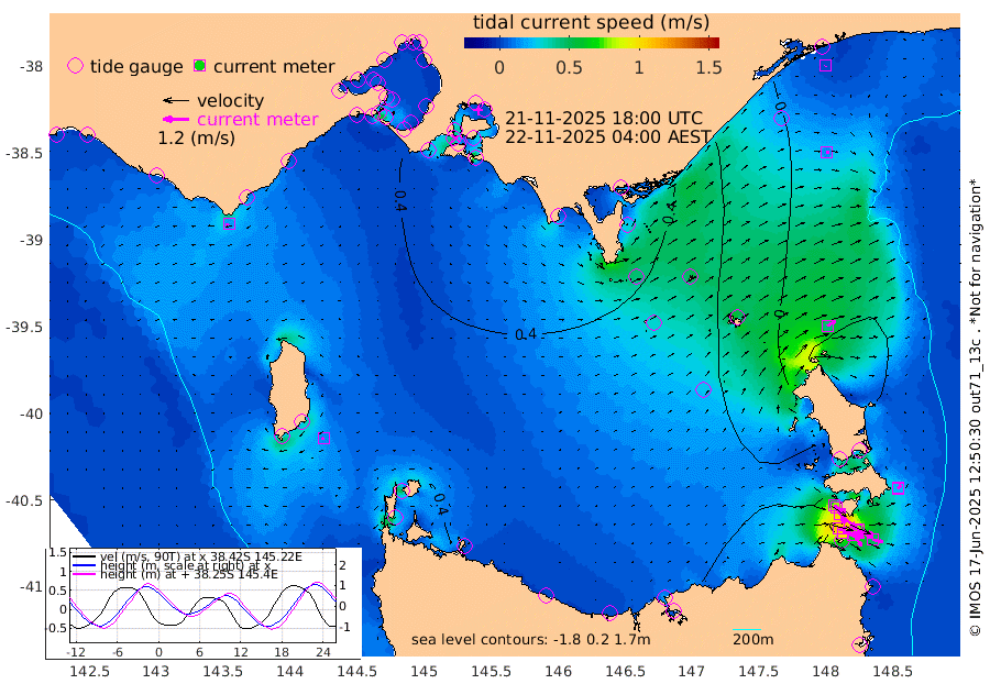 80cm/s 114T +9cm/s rms + 16cm/s 128T. CWTb1 63m 71cm/s 106T +8cm/s rms + 14cm/s 130T. C1A1 56m 98cm/s 104T +8cm/s rms + 12cm/s 12T. C1A3 27m 63cm/s 125T +0cm/s rms + 0cm/s 0T. CW1 32m 102cm/s 130T +11cm/s rms + 9cm/s 121T. CW2A1 44m 64cm/s 143T +7cm/s rms + 12cm/s 156T. CW2A2 44m 79cm/s 151T +7cm/s rms + 4cm/s 115T. CW3 33m 107cm/s 109T +9cm/s rms + 6cm/s 84T. CW4A1 30m 48cm/s 102T +5cm/s rms + 7cm/s 87T. CW4A2 36m 21cm/s 40T +9cm/s rms + 16cm/s 35T. CW6A1 37m 22cm/s 52T +6cm/s rms + 4cm/s 94T. CW6A2 31m 44cm/s 57T +4cm/s rms + 6cm/s 137T. BASS-CS91 47m 14cm/s 98T +11cm/s rms + 3cm/s -58T. BASS-CS91 70m 3cm/s -152T +10cm/s rms + 1cm/s 137T. BASS-CS91 47m 13cm/s -111T +10cm/s rms + 3cm/s 42T. BASS-CS91 53m 17cm/s -108T +8cm/s rms + 2cm/s 81T. BASS-CS91 64m 4cm/s 52T +6cm/s rms + 5cm/s 151T. BASS-UN91 115m 4cm/s -38T +4cm/s rms + 3cm/s 111T. Tas91 UNSW Mooring #1 65m 95m -4cm Lakes Entrance (Outer) 1cm Barracouta Platform 22cm Hogan Island 56cm Port Welshpool Pier 42cm Rabbit Island 33cm East Moncoeur Island 22cm Curtis Island 37cm Waratah Bay 67cm San Remo 70cm Elizabeth Island 91cm Bouchier Channel 93cm Tooradin 64cm Cowes Jetty 67cm Western Port (Stony Point) 88cm Western Port (Sandy Point) 37cm Flinders Jetty 23cm Mornington 25cm Sandringham 22cm Rosebud Jetty 23cm Hovell Pile 22cm South Channel 25cm Point Lonsdale 21cm Queenscliff 24cm West Channel Pile 24cm Barwon Heads 24cm St Leonards 28cm Point Richards (Corio Bay) 26cm Point Richards Channel 29cm Geelong 26cm Werribee 26cm Altona 27cm Wilson Spit 26cm Melbourne (Williamstown) 27cm St Kilda 30cm Lorne 29cm Apollo Bay 6cm Garden Cove 9cm Bass Pyramid 34cm Seal Bay 33cm King Island (Grassy) 43cm Stack Island 35cm Three Hummock Island 25cm Stanley 15cm Burnie 12cm Devonport 13cm Low Head 35cm Bell Bay 11cm Big River Cove 1cm Lady Barron Harbour -35cm Swan Island -25cm Eddystone Point -17cm St Helens 30cm Port Campbell 32cm Warrnambool 32cm Port Fairy