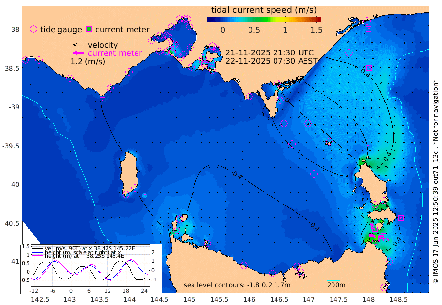 25cm/s -72T +9cm/s rms + 16cm/s 128T. CWTb1 63m 30cm/s -75T +8cm/s rms + 14cm/s 130T. C1A1 56m 73cm/s -76T +8cm/s rms + 12cm/s 12T. C1A3 27m 30cm/s -60T +0cm/s rms + 0cm/s 0T. CW1 32m 49cm/s -55T +11cm/s rms + 9cm/s 121T. CW2A1 44m 35cm/s -43T +7cm/s rms + 12cm/s 156T. CW2A2 44m 36cm/s -29T +7cm/s rms + 4cm/s 115T. CW3 33m 56cm/s -73T +9cm/s rms + 6cm/s 84T. CW4A1 30m 34cm/s -57T +5cm/s rms + 7cm/s 87T. CW4A2 36m 3cm/s 7T +9cm/s rms + 16cm/s 35T. CW6A1 37m 5cm/s -98T +6cm/s rms + 4cm/s 94T. CW6A2 31m 15cm/s -70T +4cm/s rms + 6cm/s 137T. BASS-CS91 47m 16cm/s 58T +11cm/s rms + 3cm/s -58T. BASS-CS91 70m 11cm/s 70T +10cm/s rms + 1cm/s 137T. BASS-CS91 47m 16cm/s 49T +10cm/s rms + 3cm/s 42T. BASS-CS91 53m 1cm/s 124T +8cm/s rms + 2cm/s 81T. BASS-CS91 64m 8cm/s 14T +6cm/s rms + 5cm/s 151T. BASS-UN91 115m 9cm/s -14T +4cm/s rms + 3cm/s 111T. Tas91 UNSW Mooring #1 65m 95m 36cm Lakes Entrance (Outer) 16cm Barracouta Platform 0cm Hogan Island 1cm Port Welshpool Pier -5cm Rabbit Island -14cm East Moncoeur Island -19cm Curtis Island -40cm Waratah Bay -45cm San Remo -34cm Elizabeth Island -41cm Bouchier Channel -36cm Tooradin -41cm Cowes Jetty -39cm Western Port (Stony Point) -36cm Western Port (Sandy Point) -38cm Flinders Jetty 14cm Mornington 12cm Sandringham 14cm Rosebud Jetty 12cm Hovell Pile 1cm South Channel -17cm Point Lonsdale -3cm Queenscliff 12cm West Channel Pile -31cm Barwon Heads 12cm St Leonards 12cm Point Richards (Corio Bay) 12cm Point Richards Channel 13cm Geelong 13cm Werribee 11cm Altona 13cm Wilson Spit 13cm Melbourne (Williamstown) 13cm St Kilda -29cm Lorne -20cm Apollo Bay 0cm Garden Cove -23cm Bass Pyramid -7cm Seal Bay -22cm King Island (Grassy) -59cm Stack Island -40cm Three Hummock Island -59cm Stanley -53cm Burnie -51cm Devonport -49cm Low Head -55cm Bell Bay -24cm Big River Cove 7cm Lady Barron Harbour 29cm Swan Island 49cm Eddystone Point 21cm St Helens -6cm Port Campbell -5cm Warrnambool -4cm Port Fairy