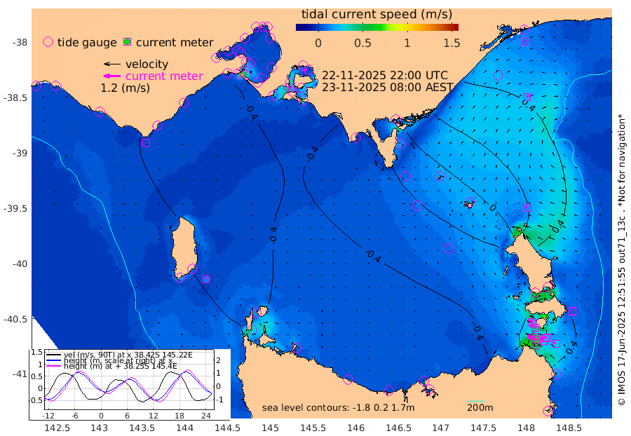 20cm/s -75T +9cm/s rms + 16cm/s 128T. CWTb1 63m 24cm/s -76T +8cm/s rms + 14cm/s 130T. C1A1 56m 67cm/s -77T +8cm/s rms + 12cm/s 12T. C1A3 27m 24cm/s -62T +0cm/s rms + 0cm/s 0T. CW1 32m 41cm/s -56T +11cm/s rms + 9cm/s 121T. CW2A1 44m 28cm/s -44T +7cm/s rms + 12cm/s 156T. CW2A2 44m 30cm/s -31T +7cm/s rms + 4cm/s 115T. CW3 33m 49cm/s -73T +9cm/s rms + 6cm/s 84T. CW4A1 30m 29cm/s -53T +5cm/s rms + 7cm/s 87T. CW4A2 36m 5cm/s 20T +9cm/s rms + 16cm/s 35T. CW6A1 37m 3cm/s -91T +6cm/s rms + 4cm/s 94T. CW6A2 31m 14cm/s -59T +4cm/s rms + 6cm/s 137T. BASS-CS91 47m 19cm/s 62T +11cm/s rms + 3cm/s -58T. BASS-CS91 70m 12cm/s 71T +10cm/s rms + 1cm/s 137T. BASS-CS91 47m 10cm/s 48T +10cm/s rms + 3cm/s 42T. BASS-CS91 53m 3cm/s -141T +8cm/s rms + 2cm/s 81T. BASS-CS91 64m 8cm/s 8T +6cm/s rms + 5cm/s 151T. BASS-UN91 115m 9cm/s -23T +4cm/s rms + 3cm/s 111T. Tas91 UNSW Mooring #1 65m 95m 35cm Lakes Entrance (Outer) 16cm Barracouta Platform -4cm Hogan Island 0cm Port Welshpool Pier -9cm Rabbit Island -18cm East Moncoeur Island -23cm Curtis Island -45cm Waratah Bay -48cm San Remo -37cm Elizabeth Island -41cm Bouchier Channel -36cm Tooradin -45cm Cowes Jetty -42cm Western Port (Stony Point) -37cm Western Port (Sandy Point) -42cm Flinders Jetty 16cm Mornington 14cm Sandringham 16cm Rosebud Jetty 15cm Hovell Pile 1cm South Channel -19cm Point Lonsdale -3cm Queenscliff 14cm West Channel Pile -34cm Barwon Heads 13cm St Leonards 15cm Point Richards (Corio Bay) 14cm Point Richards Channel 16cm Geelong 15cm Werribee 14cm Altona 15cm Wilson Spit 15cm Melbourne (Williamstown) 15cm St Kilda -32cm Lorne -22cm Apollo Bay -4cm Garden Cove -30cm Bass Pyramid -9cm Seal Bay -23cm King Island (Grassy) -58cm Stack Island -41cm Three Hummock Island -64cm Stanley -59cm Burnie -57cm Devonport -54cm Low Head -58cm Bell Bay -29cm Big River Cove 4cm Lady Barron Harbour 23cm Swan Island 46cm Eddystone Point 20cm St Helens -4cm Port Campbell -4cm Warrnambool -3cm Port Fairy
