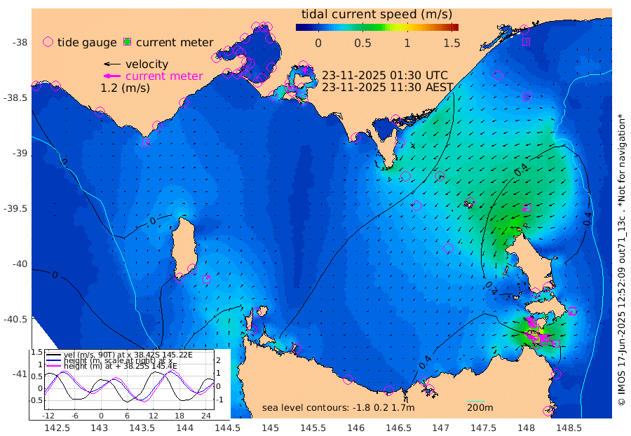 54cm/s -67T +9cm/s rms + 16cm/s 128T. CWTb1 63m 50cm/s -75T +8cm/s rms + 14cm/s 130T. C1A1 56m 75cm/s -74T +8cm/s rms + 12cm/s 12T. C1A3 27m 47cm/s -51T +0cm/s rms + 0cm/s 0T. CW1 32m 73cm/s -48T +11cm/s rms + 9cm/s 121T. CW2A1 44m 47cm/s -37T +7cm/s rms + 12cm/s 156T. CW2A2 44m 58cm/s -29T +7cm/s rms + 4cm/s 115T. CW3 33m 79cm/s -69T +9cm/s rms + 6cm/s 84T. CW4A1 30m 35cm/s -79T +5cm/s rms + 7cm/s 87T. CW4A2 36m 15cm/s -144T +9cm/s rms + 16cm/s 35T. CW6A1 37m 34cm/s -139T +6cm/s rms + 4cm/s 94T. CW6A2 31m 40cm/s -122T +4cm/s rms + 6cm/s 137T. BASS-CS91 47m 8cm/s -85T +11cm/s rms + 3cm/s -58T. BASS-CS91 70m 4cm/s 56T +10cm/s rms + 1cm/s 137T. BASS-CS91 47m 27cm/s 39T +10cm/s rms + 3cm/s 42T. BASS-CS91 53m 16cm/s 62T +8cm/s rms + 2cm/s 81T. BASS-CS91 64m 21cm/s 6T +6cm/s rms + 5cm/s 151T. BASS-UN91 115m 14cm/s -14T +4cm/s rms + 3cm/s 111T. Tas91 UNSW Mooring #1 65m 95m 28cm Lakes Entrance (Outer) 15cm Barracouta Platform 36cm Hogan Island 11cm Port Welshpool Pier 25cm Rabbit Island 32cm East Moncoeur Island 37cm Curtis Island 33cm Waratah Bay 5cm San Remo -1cm Elizabeth Island -21cm Bouchier Channel -31cm Tooradin 5cm Cowes Jetty 2cm Western Port (Stony Point) -20cm Western Port (Sandy Point) 26cm Flinders Jetty -3cm Mornington -5cm Sandringham -1cm Rosebud Jetty -1cm Hovell Pile 9cm South Channel 18cm Point Lonsdale 14cm Queenscliff -1cm West Channel Pile 19cm Barwon Heads -3cm St Leonards -5cm Point Richards (Corio Bay) -5cm Point Richards Channel -7cm Geelong -5cm Werribee -5cm Altona -7cm Wilson Spit -4cm Melbourne (Williamstown) -4cm St Kilda 24cm Lorne 18cm Apollo Bay 45cm Garden Cove 49cm Bass Pyramid 1cm Seal Bay 6cm King Island (Grassy) -11cm Stack Island 16cm Three Hummock Island 40cm Stanley 51cm Burnie 55cm Devonport 53cm Low Head 30cm Bell Bay 45cm Big River Cove 39cm Lady Barron Harbour 68cm Swan Island 52cm Eddystone Point 48cm St Helens 5cm Port Campbell 0cm Warrnambool -1cm Port Fairy