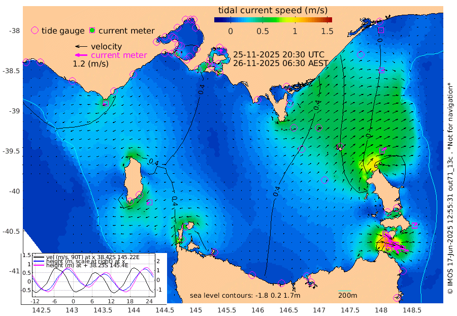 91cm/s 113T +9cm/s rms + 16cm/s 128T. CWTb1 63m 83cm/s 106T +8cm/s rms + 14cm/s 130T. C1A1 56m 116cm/s 103T +8cm/s rms + 12cm/s 12T. C1A3 27m 76cm/s 127T +0cm/s rms + 0cm/s 0T. CW1 32m 118cm/s 129T +11cm/s rms + 9cm/s 121T. CW2A1 44m 79cm/s 144T +7cm/s rms + 12cm/s 156T. CW2A2 44m 94cm/s 152T +7cm/s rms + 4cm/s 115T. CW3 33m 126cm/s 111T +9cm/s rms + 6cm/s 84T. CW4A1 30m 59cm/s 104T +5cm/s rms + 7cm/s 87T. CW4A2 36m 28cm/s 46T +9cm/s rms + 16cm/s 35T. CW6A1 37m 23cm/s 51T +6cm/s rms + 4cm/s 94T. CW6A2 31m 53cm/s 58T +4cm/s rms + 6cm/s 137T. BASS-CS91 47m 20cm/s 99T +11cm/s rms + 3cm/s -58T. BASS-CS91 70m 3cm/s -180T +10cm/s rms + 1cm/s 137T. BASS-CS91 47m 28cm/s -120T +10cm/s rms + 3cm/s 42T. BASS-CS91 53m 32cm/s -109T +8cm/s rms + 2cm/s 81T. BASS-CS91 64m 6cm/s 19T +6cm/s rms + 5cm/s 151T. BASS-UN91 115m 8cm/s -59T +4cm/s rms + 3cm/s 111T. Tas91 UNSW Mooring #1 65m 95m -1cm Lakes Entrance (Outer) 6cm Barracouta Platform 22cm Hogan Island 78cm Port Welshpool Pier 48cm Rabbit Island 30cm East Moncoeur Island 27cm Curtis Island 38cm Waratah Bay 68cm San Remo 77cm Elizabeth Island 103cm Bouchier Channel 106cm Tooradin 61cm Cowes Jetty 71cm Western Port (Stony Point) 100cm Western Port (Sandy Point) 28cm Flinders Jetty 29cm Mornington 32cm Sandringham 27cm Rosebud Jetty 28cm Hovell Pile 22cm South Channel 20cm Point Lonsdale 20cm Queenscliff 28cm West Channel Pile 17cm Barwon Heads 29cm St Leonards 33cm Point Richards (Corio Bay) 32cm Point Richards Channel 34cm Geelong 27cm Werribee 32cm Altona 34cm Wilson Spit 30cm Melbourne (Williamstown) 32cm St Kilda 18cm Lorne 16cm Apollo Bay 7cm Garden Cove 18cm Bass Pyramid 23cm Seal Bay 19cm King Island (Grassy) 50cm Stack Island 43cm Three Hummock Island 39cm Stanley 23cm Burnie 20cm Devonport 22cm Low Head 54cm Bell Bay 18cm Big River Cove 7cm Lady Barron Harbour -22cm Swan Island -20cm Eddystone Point -12cm St Helens 18cm Port Campbell 23cm Warrnambool 23cm Port Fairy