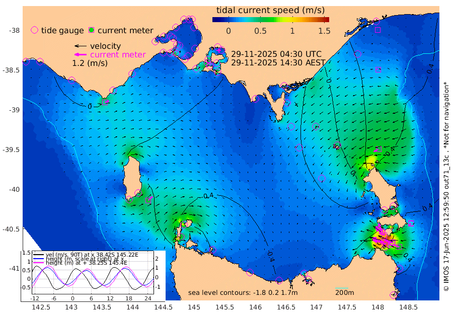 83cm/s -68T +9cm/s rms + 16cm/s 128T. CWTb1 63m 79cm/s -74T +8cm/s rms + 14cm/s 130T. C1A1 56m 133cm/s -75T +8cm/s rms + 12cm/s 12T. C1A3 27m 72cm/s -51T +0cm/s rms + 0cm/s 0T. CW1 32m 117cm/s -50T +11cm/s rms + 9cm/s 121T. CW2A1 44m 76cm/s -38T +7cm/s rms + 12cm/s 156T. CW2A2 44m 97cm/s -27T +7cm/s rms + 4cm/s 115T. CW3 33m 126cm/s -70T +9cm/s rms + 6cm/s 84T. CW4A1 30m 59cm/s -69T +5cm/s rms + 7cm/s 87T. CW4A2 36m 17cm/s -140T +9cm/s rms + 16cm/s 35T. CW6A1 37m 27cm/s -131T +6cm/s rms + 4cm/s 94T. CW6A2 31m 52cm/s -117T +4cm/s rms + 6cm/s 137T. BASS-CS91 47m 16cm/s -84T +11cm/s rms + 3cm/s -58T. BASS-CS91 70m 2cm/s -50T +10cm/s rms + 1cm/s 137T. BASS-CS91 47m 55cm/s 47T +10cm/s rms + 3cm/s 42T. BASS-CS91 53m 40cm/s 68T +8cm/s rms + 2cm/s 81T. BASS-CS91 64m 10cm/s 39T +6cm/s rms + 5cm/s 151T. BASS-UN91 115m 11cm/s 19T +4cm/s rms + 3cm/s 111T. Tas91 UNSW Mooring #1 65m 95m 26cm Lakes Entrance (Outer) 16cm Barracouta Platform 3cm Hogan Island -52cm Port Welshpool Pier -14cm Rabbit Island -3cm East Moncoeur Island -1cm Curtis Island -19cm Waratah Bay -44cm San Remo -49cm Elizabeth Island -70cm Bouchier Channel -76cm Tooradin -35cm Cowes Jetty -44cm Western Port (Stony Point) -74cm Western Port (Sandy Point) -4cm Flinders Jetty -15cm Mornington -15cm Sandringham -13cm Rosebud Jetty -15cm Hovell Pile -8cm South Channel -3cm Point Lonsdale -4cm Queenscliff -15cm West Channel Pile -4cm Barwon Heads -16cm St Leonards -19cm Point Richards (Corio Bay) -19cm Point Richards Channel -20cm Geelong -14cm Werribee -17cm Altona -21cm Wilson Spit -17cm Melbourne (Williamstown) -18cm St Kilda 3cm Lorne 3cm Apollo Bay 19cm Garden Cove -3cm Bass Pyramid -3cm Seal Bay -3cm King Island (Grassy) -59cm Stack Island -36cm Three Hummock Island -36cm Stanley -18cm Burnie -13cm Devonport -16cm Low Head -50cm Bell Bay -3cm Big River Cove 16cm Lady Barron Harbour 32cm Swan Island 34cm Eddystone Point 24cm St Helens 4cm Port Campbell -4cm Warrnambool -5cm Port Fairy