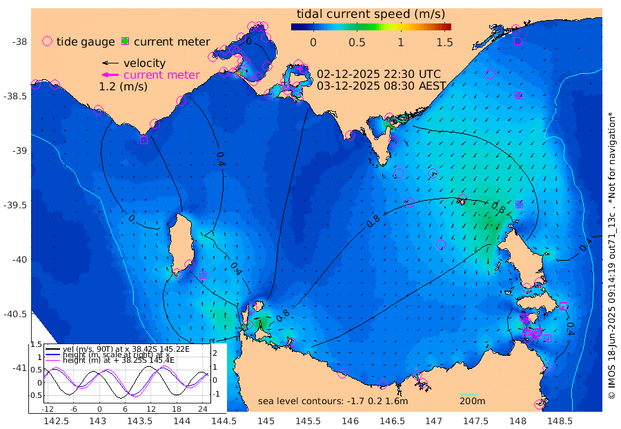 13cm/s -59T +9cm/s rms + 16cm/s 128T. CWTb1 63m 6cm/s -65T +8cm/s rms + 14cm/s 130T. C1A1 56m 15cm/s 105T +8cm/s rms + 12cm/s 12T. C1A3 27m 4cm/s 77T +0cm/s rms + 0cm/s 0T. CW1 32m 5cm/s -33T +11cm/s rms + 9cm/s 121T. CW2A1 44m 6cm/s 118T +7cm/s rms + 12cm/s 156T. CW2A2 44m 4cm/s -33T +7cm/s rms + 4cm/s 115T. CW3 33m 7cm/s -49T +9cm/s rms + 6cm/s 84T. CW4A1 30m 16cm/s 166T +5cm/s rms + 7cm/s 87T. CW4A2 36m 22cm/s -166T +9cm/s rms + 16cm/s 35T. CW6A1 37m 29cm/s -151T +6cm/s rms + 4cm/s 94T. CW6A2 31m 13cm/s -159T +4cm/s rms + 6cm/s 137T. BASS-CS91 47m 10cm/s -135T +11cm/s rms + 3cm/s -58T. BASS-CS91 70m 3cm/s -107T +10cm/s rms + 1cm/s 137T. BASS-CS91 47m 13cm/s 17T +10cm/s rms + 3cm/s 42T. BASS-CS91 53m 4cm/s -43T +8cm/s rms + 2cm/s 81T. BASS-CS91 64m 20cm/s 13T +6cm/s rms + 5cm/s 151T. BASS-UN91 115m 15cm/s -11T +4cm/s rms + 3cm/s 111T. Tas91 UNSW Mooring #1 65m 95m 31cm Lakes Entrance (Outer) 20cm Barracouta Platform 83cm Hogan Island 74cm Port Welshpool Pier 77cm Rabbit Island 84cm East Moncoeur Island 90cm Curtis Island 84cm Waratah Bay 62cm San Remo 58cm Elizabeth Island 49cm Bouchier Channel 38cm Tooradin 58cm Cowes Jetty 62cm Western Port (Stony Point) 48cm Western Port (Sandy Point) 63cm Flinders Jetty 6cm Mornington 4cm Sandringham 7cm Rosebud Jetty 6cm Hovell Pile 19cm South Channel 36cm Point Lonsdale 25cm Queenscliff 6cm West Channel Pile 45cm Barwon Heads 7cm St Leonards 5cm Point Richards (Corio Bay) 6cm Point Richards Channel 2cm Geelong 4cm Werribee 4cm Altona 6cm Wilson Spit 4cm Melbourne (Williamstown) 5cm St Kilda 43cm Lorne 29cm Apollo Bay 85cm Garden Cove 100cm Bass Pyramid 8cm Seal Bay 15cm King Island (Grassy) 40cm Stack Island 60cm Three Hummock Island 108cm Stanley 118cm Burnie 121cm Devonport 119cm Low Head 105cm Bell Bay 109cm Big River Cove 70cm Lady Barron Harbour 57cm Swan Island 35cm Eddystone Point 51cm St Helens -3cm Port Campbell -8cm Warrnambool -8cm Port Fairy