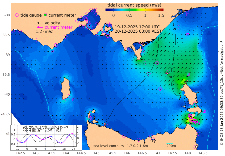 69cm/s 114T +9cm/s rms + 16cm/s 128T. CWTb1 63m 60cm/s 107T +8cm/s rms + 14cm/s 130T. C1A1 56m 80cm/s 104T +8cm/s rms + 12cm/s 12T. C1A3 27m 53cm/s 125T +0cm/s rms + 0cm/s 0T. CW1 32m 86cm/s 130T +11cm/s rms + 9cm/s 121T. CW2A1 44m 54cm/s 143T +7cm/s rms + 12cm/s 156T. CW2A2 44m 67cm/s 151T +7cm/s rms + 4cm/s 115T. CW3 33m 90cm/s 109T +9cm/s rms + 6cm/s 84T. CW4A1 30m 40cm/s 100T +5cm/s rms + 7cm/s 87T. CW4A2 36m 20cm/s 41T +9cm/s rms + 16cm/s 35T. CW6A1 37m 18cm/s 57T +6cm/s rms + 4cm/s 94T. CW6A2 31m 36cm/s 53T +4cm/s rms + 6cm/s 137T. BASS-CS91 47m 13cm/s 92T +11cm/s rms + 3cm/s -58T. BASS-CS91 70m 2cm/s -179T +10cm/s rms + 1cm/s 137T. BASS-CS91 47m 8cm/s -101T +10cm/s rms + 3cm/s 42T. BASS-CS91 53m 12cm/s -108T +8cm/s rms + 2cm/s 81T. BASS-CS91 64m 5cm/s 44T +6cm/s rms + 5cm/s 151T. BASS-UN91 115m 5cm/s -35T +4cm/s rms + 3cm/s 111T. Tas91 UNSW Mooring #1 65m 95m -5cm Lakes Entrance (Outer) -1cm Barracouta Platform 12cm Hogan Island 37cm Port Welshpool Pier 27cm Rabbit Island 21cm East Moncoeur Island 10cm Curtis Island 24cm Waratah Bay 49cm San Remo 51cm Elizabeth Island 67cm Bouchier Channel 68cm Tooradin 48cm Cowes Jetty 50cm Western Port (Stony Point) 65cm Western Port (Sandy Point) 29cm Flinders Jetty 19cm Mornington 20cm Sandringham 19cm Rosebud Jetty 20cm Hovell Pile 19cm South Channel 23cm Point Lonsdale 19cm Queenscliff 20cm West Channel Pile 22cm Barwon Heads 20cm St Leonards 23cm Point Richards (Corio Bay) 22cm Point Richards Channel 24cm Geelong 21cm Werribee 21cm Altona 23cm Wilson Spit 21cm Melbourne (Williamstown) 22cm St Kilda 29cm Lorne 32cm Apollo Bay -1cm Garden Cove -4cm Bass Pyramid 37cm Seal Bay 35cm King Island (Grassy) 30cm Stack Island 25cm Three Hummock Island 7cm Stanley -1cm Burnie -4cm Devonport -4cm Low Head 14cm Bell Bay -3cm Big River Cove -6cm Lady Barron Harbour -34cm Swan Island -21cm Eddystone Point -17cm St Helens 37cm Port Campbell 40cm Warrnambool 39cm Port Fairy