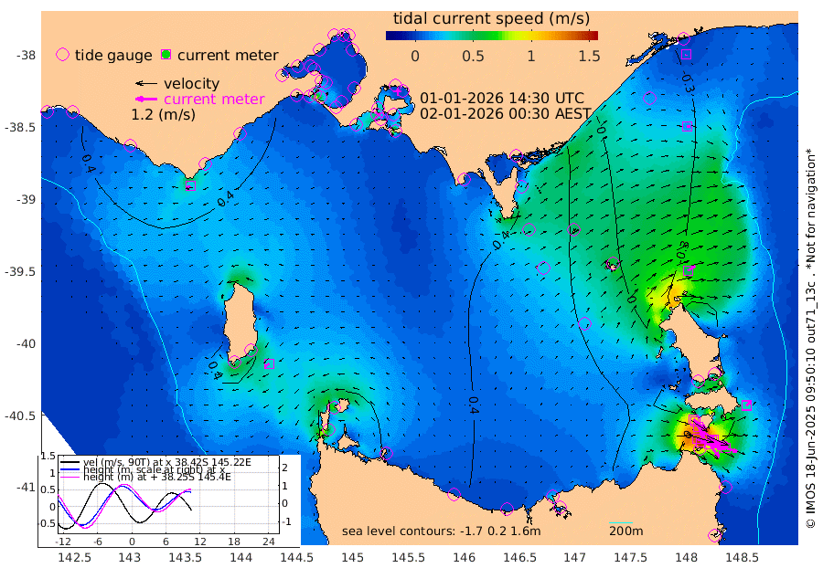95cm/s 113T +9cm/s rms + 16cm/s 128T. CWTb1 63m 87cm/s 106T +8cm/s rms + 14cm/s 130T. C1A1 56m 144cm/s 104T +8cm/s rms + 12cm/s 12T. C1A3 27m 87cm/s 127T +0cm/s rms + 0cm/s 0T. CW1 32m 127cm/s 130T +11cm/s rms + 9cm/s 121T. CW2A1 44m 90cm/s 144T +7cm/s rms + 12cm/s 156T. CW2A2 44m 100cm/s 152T +7cm/s rms + 4cm/s 115T. CW3 33m 136cm/s 109T +9cm/s rms + 6cm/s 84T. CW4A1 30m 67cm/s 105T +5cm/s rms + 7cm/s 87T. CW4A2 36m 24cm/s 50T +9cm/s rms + 16cm/s 35T. CW6A1 37m 35cm/s 48T +6cm/s rms + 4cm/s 94T. CW6A2 31m 50cm/s 58T +4cm/s rms + 6cm/s 137T. BASS-CS91 47m 16cm/s 100T +11cm/s rms + 3cm/s -58T. BASS-CS91 70m 5cm/s -162T +10cm/s rms + 1cm/s 137T. BASS-CS91 47m 31cm/s -123T +10cm/s rms + 3cm/s 42T. BASS-CS91 53m 28cm/s -110T +8cm/s rms + 2cm/s 81T. BASS-CS91 64m 5cm/s 13T +6cm/s rms + 5cm/s 151T. BASS-UN91 115m 7cm/s -90T +4cm/s rms + 3cm/s 111T. Tas91 UNSW Mooring #1 65m 95m -20cm Lakes Entrance (Outer) -10cm Barracouta Platform 7cm Hogan Island 57cm Port Welshpool Pier 26cm Rabbit Island 20cm East Moncoeur Island 8cm Curtis Island 33cm Waratah Bay 70cm San Remo 74cm Elizabeth Island 91cm Bouchier Channel 92cm Tooradin 61cm Cowes Jetty 64cm Western Port (Stony Point) 95cm Western Port (Sandy Point) 34cm Flinders Jetty 17cm Mornington 20cm Sandringham 17cm Rosebud Jetty 18cm Hovell Pile 18cm South Channel 23cm Point Lonsdale 17cm Queenscliff 19cm West Channel Pile 24cm Barwon Heads 18cm St Leonards 22cm Point Richards (Corio Bay) 21cm Point Richards Channel 23cm Geelong 14cm Werribee 21cm Altona 22cm Wilson Spit 20cm Melbourne (Williamstown) 21cm St Kilda 31cm Lorne 32cm Apollo Bay -12cm Garden Cove 2cm Bass Pyramid 44cm Seal Bay 44cm King Island (Grassy) 71cm Stack Island 54cm Three Hummock Island 37cm Stanley 19cm Burnie 13cm Devonport 16cm Low Head 48cm Bell Bay 4cm Big River Cove -14cm Lady Barron Harbour -31cm Swan Island -29cm Eddystone Point -22cm St Helens 25cm Port Campbell 45cm Warrnambool 44cm Port Fairy
