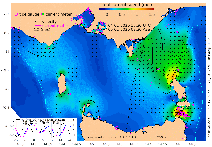 111cm/s 113T +9cm/s rms + 16cm/s 128T. CWTb1 63m 100cm/s 106T +8cm/s rms + 14cm/s 130T. C1A1 56m 156cm/s 104T +8cm/s rms + 12cm/s 12T. C1A3 27m 99cm/s 126T +0cm/s rms + 0cm/s 0T. CW1 32m 144cm/s 130T +11cm/s rms + 9cm/s 121T. CW2A1 44m 100cm/s 144T +7cm/s rms + 12cm/s 156T. CW2A2 44m 113cm/s 151T +7cm/s rms + 4cm/s 115T. CW3 33m 153cm/s 109T +9cm/s rms + 6cm/s 84T. CW4A1 30m 75cm/s 105T +5cm/s rms + 7cm/s 87T. CW4A2 36m 33cm/s 44T +9cm/s rms + 16cm/s 35T. CW6A1 37m 40cm/s 51T +6cm/s rms + 4cm/s 94T. CW6A2 31m 58cm/s 57T +4cm/s rms + 6cm/s 137T. BASS-CS91 47m 19cm/s 96T +11cm/s rms + 3cm/s -58T. BASS-CS91 70m 4cm/s -168T +10cm/s rms + 1cm/s 137T. BASS-CS91 47m 28cm/s -120T +10cm/s rms + 3cm/s 42T. BASS-CS91 53m 30cm/s -109T +8cm/s rms + 2cm/s 81T. BASS-CS91 64m 6cm/s 16T +6cm/s rms + 5cm/s 151T. BASS-UN91 115m 8cm/s -66T +4cm/s rms + 3cm/s 111T. Tas91 UNSW Mooring #1 65m 95m -17cm Lakes Entrance (Outer) -7cm Barracouta Platform 19cm Hogan Island 70cm Port Welshpool Pier 43cm Rabbit Island 33cm East Moncoeur Island 19cm Curtis Island 43cm Waratah Bay 82cm San Remo 88cm Elizabeth Island 111cm Bouchier Channel 110cm Tooradin 77cm Cowes Jetty 82cm Western Port (Stony Point) 110cm Western Port (Sandy Point) 42cm Flinders Jetty 27cm Mornington 28cm Sandringham 24cm Rosebud Jetty 25cm Hovell Pile 25cm South Channel 30cm Point Lonsdale 24cm Queenscliff 26cm West Channel Pile 32cm Barwon Heads 27cm St Leonards 30cm Point Richards (Corio Bay) 31cm Point Richards Channel 31cm Geelong 22cm Werribee 29cm Altona 32cm Wilson Spit 28cm Melbourne (Williamstown) 29cm St Kilda 37cm Lorne 37cm Apollo Bay -4cm Garden Cove 11cm Bass Pyramid 45cm Seal Bay 40cm King Island (Grassy) 69cm Stack Island 58cm Three Hummock Island 41cm Stanley 24cm Burnie 18cm Devonport 20cm Low Head 54cm Bell Bay 11cm Big River Cove -8cm Lady Barron Harbour -31cm Swan Island -24cm Eddystone Point -24cm St Helens 31cm Port Campbell 45cm Warrnambool 45cm Port Fairy