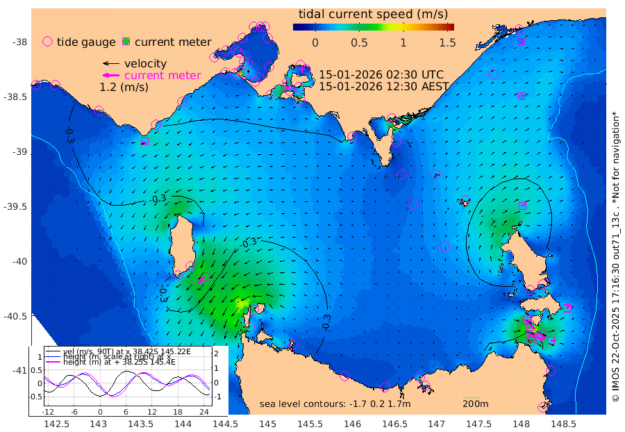 39cm/s 115T +9cm/s rms + 16cm/s 128T. CWTb1 63m 34cm/s 108T +8cm/s rms + 14cm/s 130T. C1A1 56m 53cm/s 105T +8cm/s rms + 12cm/s 12T. C1A3 27m 33cm/s 128T +0cm/s rms + 0cm/s 0T. CW1 32m 47cm/s 131T +11cm/s rms + 9cm/s 121T. CW2A1 44m 36cm/s 141T +7cm/s rms + 12cm/s 156T. CW2A2 44m 34cm/s 152T +7cm/s rms + 4cm/s 115T. CW3 33m 48cm/s 109T +9cm/s rms + 6cm/s 84T. CW4A1 30m 30cm/s 85T +5cm/s rms + 7cm/s 87T. CW4A2 36m 34cm/s 12T +9cm/s rms + 16cm/s 35T. CW6A1 37m 36cm/s 45T +6cm/s rms + 4cm/s 94T. CW6A2 31m 23cm/s 53T +4cm/s rms + 6cm/s 137T. BASS-CS91 47m 16cm/s 65T +11cm/s rms + 3cm/s -58T. BASS-CS91 70m 11cm/s 71T +10cm/s rms + 1cm/s 137T. BASS-CS91 47m 64cm/s -139T +10cm/s rms + 3cm/s 42T. BASS-CS91 53m 26cm/s -119T +8cm/s rms + 2cm/s 81T. BASS-CS91 64m 19cm/s -114T +6cm/s rms + 5cm/s 151T. BASS-UN91 115m 21cm/s -159T +4cm/s rms + 3cm/s 111T. Tas91 UNSW Mooring #1 65m 95m -26cm Lakes Entrance (Outer) -16cm Barracouta Platform -58cm Hogan Island -21cm Port Welshpool Pier -57cm Rabbit Island -58cm East Moncoeur Island -60cm Curtis Island -63cm Waratah Bay -46cm San Remo -35cm Elizabeth Island -21cm Bouchier Channel -12cm Tooradin -48cm Cowes Jetty -47cm Western Port (Stony Point) -19cm Western Port (Sandy Point) -67cm Flinders Jetty 12cm Mornington 13cm Sandringham 10cm Rosebud Jetty 10cm Hovell Pile -12cm South Channel -40cm Point Lonsdale -20cm Queenscliff 9cm West Channel Pile -52cm Barwon Heads 9cm St Leonards 12cm Point Richards (Corio Bay) 11cm Point Richards Channel 15cm Geelong 12cm Werribee 12cm Altona 13cm Wilson Spit 13cm Melbourne (Williamstown) 12cm St Kilda -62cm Lorne -59cm Apollo Bay -58cm Garden Cove -68cm Bass Pyramid -42cm Seal Bay -43cm King Island (Grassy) -12cm Stack Island -19cm Three Hummock Island -44cm Stanley -58cm Burnie -62cm Devonport -59cm Low Head -32cm Bell Bay -59cm Big River Cove -44cm Lady Barron Harbour -75cm Swan Island -52cm Eddystone Point -20cm St Helens -36cm Port Campbell -34cm Warrnambool -31cm Port Fairy