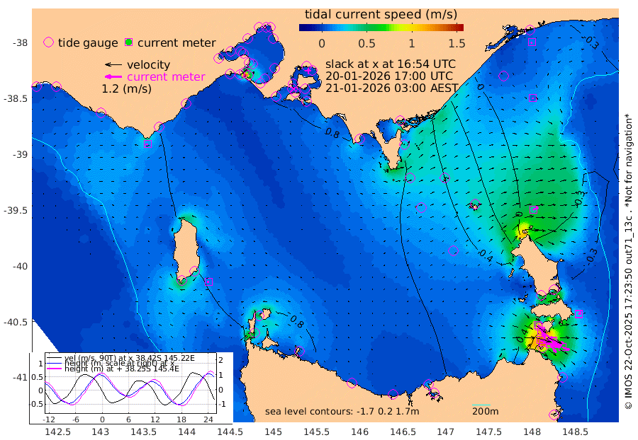 76cm/s 110T +9cm/s rms + 16cm/s 128T. CWTb1 63m 77cm/s 103T +8cm/s rms + 14cm/s 130T. C1A1 56m 129cm/s 104T +8cm/s rms + 12cm/s 12T. C1A3 27m 72cm/s 127T +0cm/s rms + 0cm/s 0T. CW1 32m 116cm/s 129T +11cm/s rms + 9cm/s 121T. CW2A1 44m 75cm/s 144T +7cm/s rms + 12cm/s 156T. CW2A2 44m 92cm/s 152T +7cm/s rms + 4cm/s 115T. CW3 33m 129cm/s 110T +9cm/s rms + 6cm/s 84T. CW4A1 30m 55cm/s 112T +5cm/s rms + 7cm/s 87T. CW4A2 36m 16cm/s 93T +9cm/s rms + 16cm/s 35T. CW6A1 37m 21cm/s 48T +6cm/s rms + 4cm/s 94T. CW6A2 31m 40cm/s 65T +4cm/s rms + 6cm/s 137T. BASS-CS91 47m 9cm/s 151T +11cm/s rms + 3cm/s -58T. BASS-CS91 70m 10cm/s -128T +10cm/s rms + 1cm/s 137T. BASS-CS91 47m 12cm/s -91T +10cm/s rms + 3cm/s 42T. BASS-CS91 53m 16cm/s -101T +8cm/s rms + 2cm/s 81T. BASS-CS91 64m 9cm/s 36T +6cm/s rms + 5cm/s 151T. BASS-UN91 115m 8cm/s -31T +4cm/s rms + 3cm/s 111T. Tas91 UNSW Mooring #1 65m 95m -18cm Lakes Entrance (Outer) -4cm Barracouta Platform 34cm Hogan Island 62cm Port Welshpool Pier 55cm Rabbit Island 51cm East Moncoeur Island 47cm Curtis Island 75cm Waratah Bay 96cm San Remo 92cm Elizabeth Island 108cm Bouchier Channel 101cm Tooradin 90cm Cowes Jetty 95cm Western Port (Stony Point) 104cm Western Port (Sandy Point) 71cm Flinders Jetty 14cm Mornington 15cm Sandringham 13cm Rosebud Jetty 13cm Hovell Pile 24cm South Channel 46cm Point Lonsdale 29cm Queenscliff 14cm West Channel Pile 57cm Barwon Heads 16cm St Leonards 17cm Point Richards (Corio Bay) 18cm Point Richards Channel 16cm Geelong 10cm Werribee 16cm Altona 18cm Wilson Spit 14cm Melbourne (Williamstown) 16cm St Kilda 64cm Lorne 57cm Apollo Bay 20cm Garden Cove 44cm Bass Pyramid 49cm Seal Bay 55cm King Island (Grassy) 74cm Stack Island 70cm Three Hummock Island 77cm Stanley 64cm Burnie 60cm Devonport 59cm Low Head 80cm Bell Bay 41cm Big River Cove 9cm Lady Barron Harbour -15cm Swan Island -28cm Eddystone Point -14cm St Helens 43cm Port Campbell 49cm Warrnambool 48cm Port Fairy