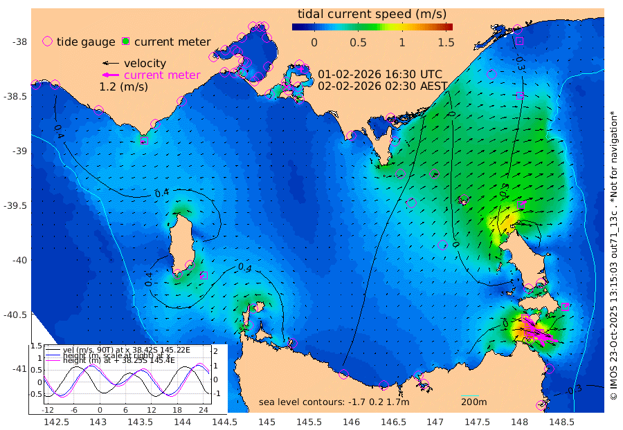 99cm/s 113T +9cm/s rms + 16cm/s 128T. CWTb1 63m 89cm/s 106T +8cm/s rms + 14cm/s 130T. C1A1 56m 135cm/s 104T +8cm/s rms + 12cm/s 12T. C1A3 27m 88cm/s 127T +0cm/s rms + 0cm/s 0T. CW1 32m 126cm/s 130T +11cm/s rms + 9cm/s 121T. CW2A1 44m 89cm/s 143T +7cm/s rms + 12cm/s 156T. CW2A2 44m 99cm/s 151T +7cm/s rms + 4cm/s 115T. CW3 33m 134cm/s 109T +9cm/s rms + 6cm/s 84T. CW4A1 30m 67cm/s 104T +5cm/s rms + 7cm/s 87T. CW4A2 36m 33cm/s 41T +9cm/s rms + 16cm/s 35T. CW6A1 37m 38cm/s 53T +6cm/s rms + 4cm/s 94T. CW6A2 31m 50cm/s 55T +4cm/s rms + 6cm/s 137T. BASS-CS91 47m 19cm/s 88T +11cm/s rms + 3cm/s -58T. BASS-CS91 70m 4cm/s 154T +10cm/s rms + 1cm/s 137T. BASS-CS91 47m 28cm/s -122T +10cm/s rms + 3cm/s 42T. BASS-CS91 53m 27cm/s -111T +8cm/s rms + 2cm/s 81T. BASS-CS91 64m 5cm/s 4T +6cm/s rms + 5cm/s 151T. BASS-UN91 115m 8cm/s -79T +4cm/s rms + 3cm/s 111T. Tas91 UNSW Mooring #1 65m 95m -22cm Lakes Entrance (Outer) -12cm Barracouta Platform -1cm Hogan Island 43cm Port Welshpool Pier 19cm Rabbit Island 11cm East Moncoeur Island -3cm Curtis Island 20cm Waratah Bay 55cm San Remo 60cm Elizabeth Island 80cm Bouchier Channel 79cm Tooradin 51cm Cowes Jetty 55cm Western Port (Stony Point) 80cm Western Port (Sandy Point) 24cm Flinders Jetty 22cm Mornington 22cm Sandringham 20cm Rosebud Jetty 21cm Hovell Pile 18cm South Channel 20cm Point Lonsdale 17cm Queenscliff 21cm West Channel Pile 20cm Barwon Heads 22cm St Leonards 25cm Point Richards (Corio Bay) 25cm Point Richards Channel 26cm Geelong 18cm Werribee 24cm Altona 26cm Wilson Spit 23cm Melbourne (Williamstown) 24cm St Kilda 26cm Lorne 29cm Apollo Bay -20cm Garden Cove -11cm Bass Pyramid 38cm Seal Bay 34cm King Island (Grassy) 52cm Stack Island 42cm Three Hummock Island 16cm Stanley -1cm Burnie -7cm Devonport -4cm Low Head 26cm Bell Bay -12cm Big River Cove -22cm Lady Barron Harbour -33cm Swan Island -22cm Eddystone Point -27cm St Helens 31cm Port Campbell 44cm Warrnambool 45cm Port Fairy