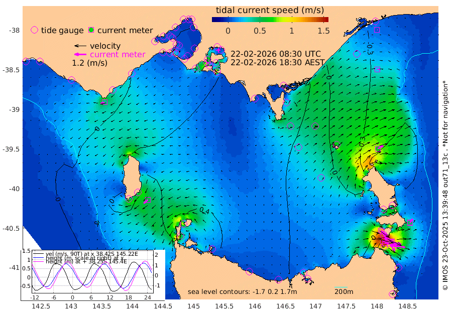106cm/s 113T +9cm/s rms + 16cm/s 128T. CWTb1 63m 94cm/s 106T +8cm/s rms + 14cm/s 130T. C1A1 56m 145cm/s 104T +8cm/s rms + 12cm/s 12T. C1A3 27m 85cm/s 128T +0cm/s rms + 0cm/s 0T. CW1 32m 135cm/s 130T +11cm/s rms + 9cm/s 121T. CW2A1 44m 89cm/s 144T +7cm/s rms + 12cm/s 156T. CW2A2 44m 108cm/s 152T +7cm/s rms + 4cm/s 115T. CW3 33m 145cm/s 110T +9cm/s rms + 6cm/s 84T. CW4A1 30m 67cm/s 100T +5cm/s rms + 7cm/s 87T. CW4A2 36m 39cm/s 27T +9cm/s rms + 16cm/s 35T. CW6A1 37m 47cm/s 40T +6cm/s rms + 4cm/s 94T. CW6A2 31m 63cm/s 60T +4cm/s rms + 6cm/s 137T. BASS-CS91 47m 24cm/s 91T +11cm/s rms + 3cm/s -58T. BASS-CS91 70m 4cm/s 100T +10cm/s rms + 1cm/s 137T. BASS-CS91 47m 54cm/s -131T +10cm/s rms + 3cm/s 42T. BASS-CS91 53m 43cm/s -111T +8cm/s rms + 2cm/s 81T. BASS-CS91 64m 9cm/s -94T +6cm/s rms + 5cm/s 151T. BASS-UN91 115m 11cm/s -135T +4cm/s rms + 3cm/s 111T. Tas91 UNSW Mooring #1 65m 95m -24cm Lakes Entrance (Outer) -10cm Barracouta Platform -5cm Hogan Island 64cm Port Welshpool Pier 21cm Rabbit Island 5cm East Moncoeur Island -4cm Curtis Island 17cm Waratah Bay 61cm San Remo 73cm Elizabeth Island 98cm Bouchier Channel 107cm Tooradin 51cm Cowes Jetty 58cm Western Port (Stony Point) 104cm Western Port (Sandy Point) 7cm Flinders Jetty 26cm Mornington 30cm Sandringham 25cm Rosebud Jetty 26cm Hovell Pile 15cm South Channel 2cm Point Lonsdale 10cm Queenscliff 27cm West Channel Pile -7cm Barwon Heads 27cm St Leonards 32cm Point Richards (Corio Bay) 30cm Point Richards Channel 35cm Geelong 25cm Werribee 31cm Altona 32cm Wilson Spit 30cm Melbourne (Williamstown) 31cm St Kilda -8cm Lorne -9cm Apollo Bay -26cm Garden Cove -7cm Bass Pyramid 2cm Seal Bay 1cm King Island (Grassy) 62cm Stack Island 36cm Three Hummock Island 26cm Stanley 5cm Burnie 0cm Devonport 4cm Low Head 47cm Bell Bay -9cm Big River Cove -20cm Lady Barron Harbour -37cm Swan Island -33cm Eddystone Point -30cm St Helens -8cm Port Campbell 1cm Warrnambool 1cm Port Fairy