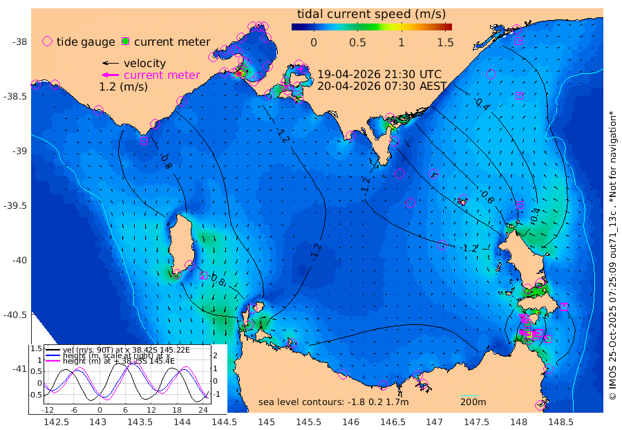26cm/s -75T +9cm/s rms + 16cm/s 128T. CWTb1 63m 29cm/s -79T +8cm/s rms + 14cm/s 130T. C1A1 56m 80cm/s -78T +8cm/s rms + 12cm/s 12T. C1A3 27m 39cm/s -60T +0cm/s rms + 0cm/s 0T. CW1 32m 50cm/s -54T +11cm/s rms + 9cm/s 121T. CW2A1 44m 42cm/s -39T +7cm/s rms + 12cm/s 156T. CW2A2 44m 37cm/s -31T +7cm/s rms + 4cm/s 115T. CW3 33m 58cm/s -76T +9cm/s rms + 6cm/s 84T. CW4A1 30m 36cm/s -53T +5cm/s rms + 7cm/s 87T. CW4A2 36m 22cm/s -5T +9cm/s rms + 16cm/s 35T. CW6A1 37m 16cm/s 18T +6cm/s rms + 4cm/s 94T. CW6A2 31m 11cm/s -59T +4cm/s rms + 6cm/s 137T. BASS-CS91 47m 17cm/s 36T +11cm/s rms + 3cm/s -58T. BASS-CS91 70m 13cm/s 62T +10cm/s rms + 1cm/s 137T. BASS-CS91 47m 30cm/s -158T +10cm/s rms + 3cm/s 42T. BASS-CS91 53m 8cm/s -164T +8cm/s rms + 2cm/s 81T. BASS-CS91 64m 31cm/s -158T +6cm/s rms + 5cm/s 151T. BASS-UN91 115m 23cm/s 170T +4cm/s rms + 3cm/s 111T. Tas91 UNSW Mooring #1 65m 95m -16cm Lakes Entrance (Outer) -17cm Barracouta Platform -110cm Hogan Island -98cm Port Welshpool Pier -113cm Rabbit Island -127cm East Moncoeur Island -122cm Curtis Island -146cm Waratah Bay -141cm San Remo -127cm Elizabeth Island -118cm Bouchier Channel -99cm Tooradin -133cm Cowes Jetty -132cm Western Port (Stony Point) -117cm Western Port (Sandy Point) -135cm Flinders Jetty -9cm Mornington -10cm Sandringham -13cm Rosebud Jetty -12cm Hovell Pile -41cm South Channel -82cm Point Lonsdale -53cm Queenscliff -13cm West Channel Pile -96cm Barwon Heads -13cm St Leonards -12cm Point Richards (Corio Bay) -12cm Point Richards Channel -8cm Geelong -7cm Werribee -11cm Altona -10cm Wilson Spit -10cm Melbourne (Williamstown) -11cm St Kilda -112cm Lorne -93cm Apollo Bay -101cm Garden Cove -127cm Bass Pyramid -64cm Seal Bay -78cm King Island (Grassy) -94cm Stack Island -113cm Three Hummock Island -158cm Stanley -163cm Burnie -164cm Devonport -160cm Low Head -151cm Bell Bay -134cm Big River Cove -74cm Lady Barron Harbour -47cm Swan Island -18cm Eddystone Point -43cm St Helens -45cm Port Campbell -50cm Warrnambool -47cm Port Fairy