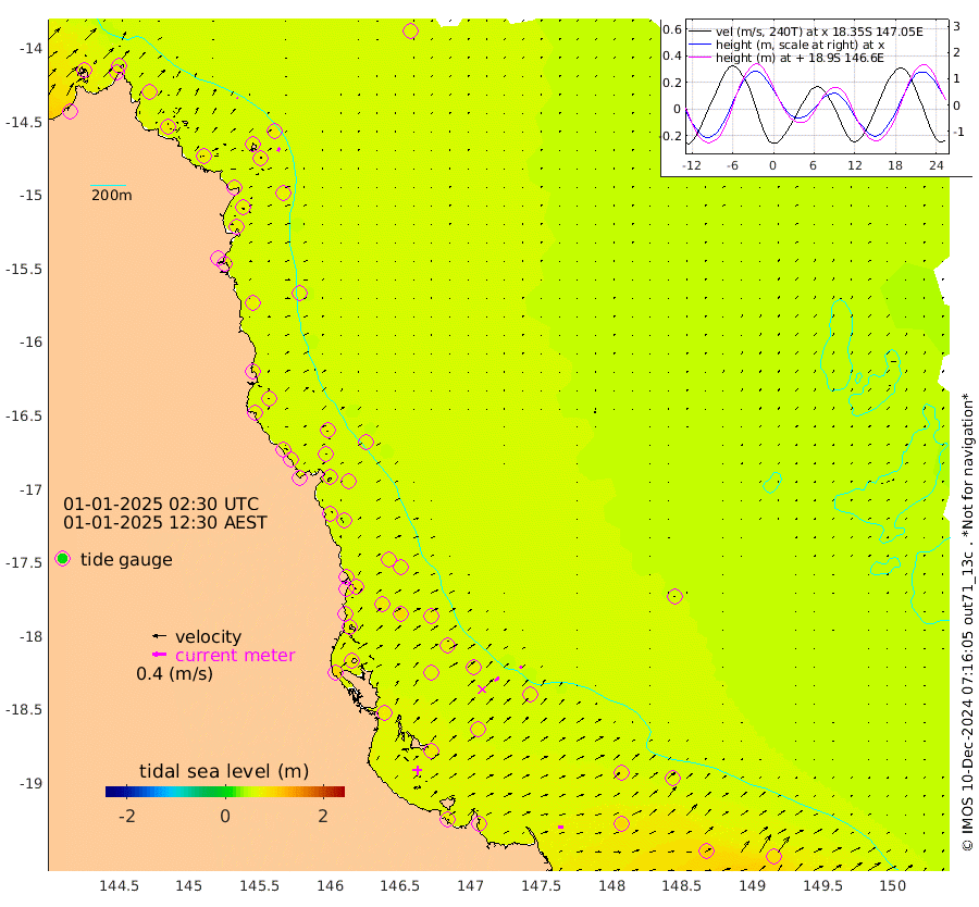 3cm/s -63T +11cm/s rms + 4cm/s -61T. GBRLSL 354m 12cm/s 26T +15cm/s rms + 2cm/s -84T. GBRLSH 32m 16cm/s 56T +15cm/s rms + 5cm/s -155T. GBRPPS 72m 6cm/s 45T +17cm/s rms + 13cm/s 115T. GBRMYR 223m 15cm/s 92T +18cm/s rms + 0cm/s -9T. NRSYON 29m 62cm Osprey Reef - West 77cm Stanley Island 48cm Pipon Islands 75cm Cape Melville 77cm Munro Reef 75cm Leggatt Island 78cm Normanby River 77cm Carter Reef 71cm Lizard Island (QLD) 79cm East Petherbridge Island 74cm North Direction Island 74cm Cape Flattery 68cm Ribbon Reef No.9 74cm Low Wooded Island 70cm Cape Bedford 41cm Endeavour River North 69cm Cooktown 65cm Cruiser Passage 69cm East Hope Island 76cm Bailay Creek 65cm Low Islets 69cm Port Douglas 65cm Palm Cove 62cm Yorkeys Knob 71cm Michaelmas Cay 61cm Euston Reef 71cm Cairns 59cm Green Island 60cm Fitzroy Island 66cm Sudbury Cay 62cm High Island 50cm Russell Island 61cm Peart Reef 58cm Nathan Reef 73cm Mourilyan Harbour 71cm Cowley Beach 81cm North Barnard Island 77cm Eddy Reef 93cm Beaver Reef 68cm Unnamed Reef No. 1 57cm Flinders Reef 73cm Clump Point 73cm Dunk Island 71cm Barnett Patches 76cm Goold Island 91cm Cardwell 64cm Britomart Reef 72cm Pith Reef 67cm Dip Reef 80cm Lucinda (Offshore) 74cm John Brewer Reef 77cm Albino Rock 79cm Shrimp Reef 67cm Jaguar Reef 81cm Townsville 78cm Cape Ferguson 96cm Stanley Reef 103cm Wallaby Reef 89cm Kennedy Reef
