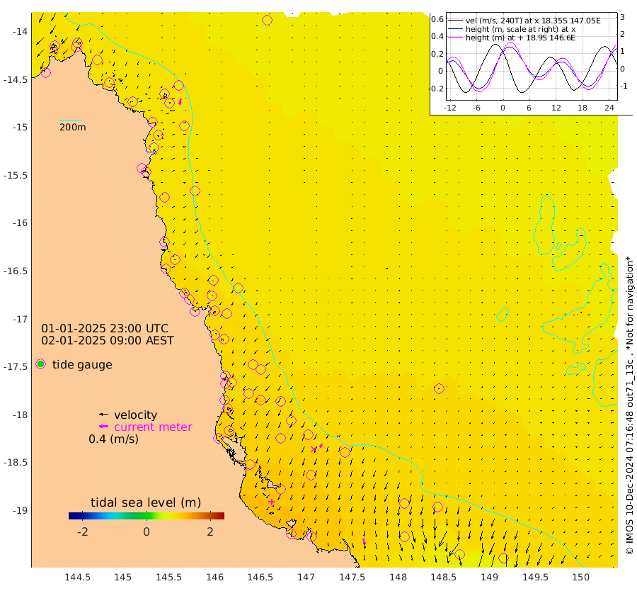 2cm/s -94T +11cm/s rms + 4cm/s -61T. GBRLSL 354m 25cm/s -168T +15cm/s rms + 2cm/s -84T. GBRLSH 32m 17cm/s -156T +15cm/s rms + 5cm/s -155T. GBRPPS 72m 8cm/s -149T +17cm/s rms + 13cm/s 115T. GBRMYR 223m 25cm/s 167T +18cm/s rms + 0cm/s -9T. NRSYON 29m 74cm Osprey Reef - West 78cm Stanley Island 55cm Pipon Islands 71cm Cape Melville 77cm Munro Reef 78cm Leggatt Island 86cm Normanby River 78cm Carter Reef 78cm Lizard Island (QLD) 72cm East Petherbridge Island 70cm North Direction Island 85cm Cape Flattery 81cm Ribbon Reef No.9 84cm Low Wooded Island 67cm Cape Bedford 47cm Endeavour River North 81cm Cooktown 81cm Cruiser Passage 88cm East Hope Island 59cm Bailay Creek 77cm Low Islets 84cm Port Douglas 88cm Palm Cove 87cm Yorkeys Knob 78cm Michaelmas Cay 76cm Euston Reef 85cm Cairns 90cm Green Island 97cm Fitzroy Island 89cm Sudbury Cay 85cm High Island 85cm Russell Island 89cm Peart Reef 85cm Nathan Reef 85cm Mourilyan Harbour 87cm Cowley Beach 78cm North Barnard Island 85cm Eddy Reef 111cm Beaver Reef 88cm Unnamed Reef No. 1 89cm Flinders Reef 91cm Clump Point 93cm Dunk Island 85cm Barnett Patches 97cm Goold Island 93cm Cardwell 97cm Britomart Reef 86cm Pith Reef 93cm Dip Reef 96cm Lucinda (Offshore) 92cm John Brewer Reef 101cm Albino Rock 87cm Shrimp Reef 85cm Jaguar Reef 102cm Townsville 99cm Cape Ferguson 72cm Stanley Reef 65cm Wallaby Reef 72cm Kennedy Reef