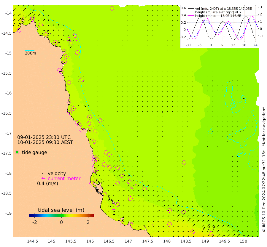 1cm/s -71T +11cm/s rms + 4cm/s -61T. GBRLSL 354m 14cm/s 26T +15cm/s rms + 2cm/s -84T. GBRLSH 32m 17cm/s 54T +15cm/s rms + 5cm/s -155T. GBRPPS 72m 8cm/s 48T +17cm/s rms + 13cm/s 115T. GBRMYR 223m 13cm/s 72T +18cm/s rms + 0cm/s -9T. NRSYON 29m 48cm Osprey Reef - West 70cm Stanley Island 31cm Pipon Islands 60cm Cape Melville 64cm Munro Reef 64cm Leggatt Island 69cm Normanby River 65cm Carter Reef 58cm Lizard Island (QLD) 66cm East Petherbridge Island 59cm North Direction Island 62cm Cape Flattery 55cm Ribbon Reef No.9 54cm Low Wooded Island 58cm Cape Bedford 33cm Endeavour River North 57cm Cooktown 50cm Cruiser Passage 54cm East Hope Island 57cm Bailay Creek 53cm Low Islets 56cm Port Douglas 52cm Palm Cove 52cm Yorkeys Knob 60cm Michaelmas Cay 45cm Euston Reef 58cm Cairns 50cm Green Island 48cm Fitzroy Island 55cm Sudbury Cay 50cm High Island 46cm Russell Island 55cm Peart Reef 49cm Nathan Reef 59cm Mourilyan Harbour 57cm Cowley Beach 70cm North Barnard Island 56cm Eddy Reef 76cm Beaver Reef 54cm Unnamed Reef No. 1 46cm Flinders Reef 60cm Clump Point 63cm Dunk Island 55cm Barnett Patches 63cm Goold Island 77cm Cardwell 51cm Britomart Reef 52cm Pith Reef 51cm Dip Reef 67cm Lucinda (Offshore) 70cm John Brewer Reef 62cm Albino Rock 60cm Shrimp Reef 48cm Jaguar Reef 67cm Townsville 64cm Cape Ferguson 79cm Stanley Reef 81cm Wallaby Reef 65cm Kennedy Reef