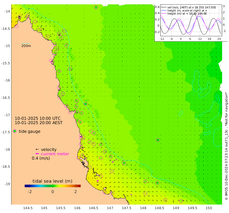 0cm/s 160T +11cm/s rms + 4cm/s -61T. GBRLSL 354m 8cm/s 28T +15cm/s rms + 2cm/s -84T. GBRLSH 32m 12cm/s 62T +15cm/s rms + 5cm/s -155T. GBRPPS 72m 3cm/s 84T +17cm/s rms + 13cm/s 115T. GBRMYR 223m 14cm/s 114T +18cm/s rms + 0cm/s -9T. NRSYON 29m 21cm Osprey Reef - West 45cm Stanley Island 51cm Pipon Islands 34cm Cape Melville 39cm Munro Reef 40cm Leggatt Island 61cm Normanby River 30cm Carter Reef 31cm Lizard Island (QLD) 40cm East Petherbridge Island 33cm North Direction Island 34cm Cape Flattery 26cm Ribbon Reef No.9 33cm Low Wooded Island 30cm Cape Bedford 15cm Endeavour River North 32cm Cooktown 23cm Cruiser Passage 25cm East Hope Island 41cm Bailay Creek 31cm Low Islets 34cm Port Douglas 31cm Palm Cove 32cm Yorkeys Knob 28cm Michaelmas Cay 14cm Euston Reef 36cm Cairns 26cm Green Island 29cm Fitzroy Island 30cm Sudbury Cay 29cm High Island 26cm Russell Island 35cm Peart Reef 30cm Nathan Reef 35cm Mourilyan Harbour 38cm Cowley Beach 48cm North Barnard Island 30cm Eddy Reef 49cm Beaver Reef 28cm Unnamed Reef No. 1 11cm Flinders Reef 39cm Clump Point 44cm Dunk Island 33cm Barnett Patches 44cm Goold Island 60cm Cardwell 35cm Britomart Reef 24cm Pith Reef 18cm Dip Reef 50cm Lucinda (Offshore) 44cm John Brewer Reef 49cm Albino Rock 29cm Shrimp Reef 20cm Jaguar Reef 54cm Townsville 47cm Cape Ferguson 47cm Stanley Reef 43cm Wallaby Reef 31cm Kennedy Reef