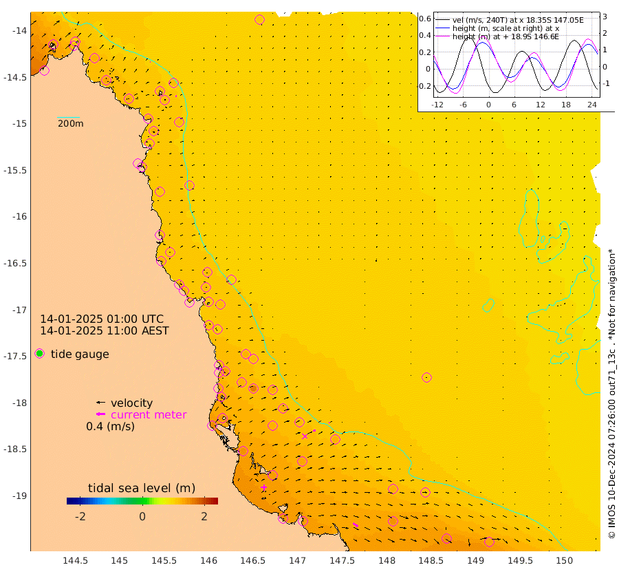 2cm/s -74T +11cm/s rms + 4cm/s -61T. GBRLSL 354m 3cm/s 96T +15cm/s rms + 2cm/s -84T. GBRLSH 32m 13cm/s 79T +15cm/s rms + 5cm/s -155T. GBRPPS 72m 4cm/s 79T +17cm/s rms + 13cm/s 115T. GBRMYR 223m 26cm/s 124T +18cm/s rms + 0cm/s -9T. NRSYON 29m 111cm Osprey Reef - West 129cm Stanley Island 95cm Pipon Islands 116cm Cape Melville 124cm Munro Reef 129cm Leggatt Island 144cm Normanby River 119cm Carter Reef 118cm Lizard Island (QLD) 122cm East Petherbridge Island 114cm North Direction Island 121cm Cape Flattery 117cm Ribbon Reef No.9 126cm Low Wooded Island 108cm Cape Bedford 83cm Endeavour River North 119cm Cooktown 114cm Cruiser Passage 112cm East Hope Island 115cm Bailay Creek 112cm Low Islets 122cm Port Douglas 121cm Palm Cove 123cm Yorkeys Knob 118cm Michaelmas Cay 90cm Euston Reef 125cm Cairns 114cm Green Island 110cm Fitzroy Island 118cm Sudbury Cay 118cm High Island 102cm Russell Island 121cm Peart Reef 116cm Nathan Reef 126cm Mourilyan Harbour 124cm Cowley Beach 136cm North Barnard Island 126cm Eddy Reef 164cm Beaver Reef 122cm Unnamed Reef No. 1 103cm Flinders Reef 131cm Clump Point 137cm Dunk Island 124cm Barnett Patches 141cm Goold Island 155cm Cardwell 125cm Britomart Reef 118cm Pith Reef 122cm Dip Reef 144cm Lucinda (Offshore) 133cm John Brewer Reef 140cm Albino Rock 123cm Shrimp Reef 110cm Jaguar Reef 149cm Townsville 142cm Cape Ferguson 148cm Stanley Reef 143cm Wallaby Reef 131cm Kennedy Reef