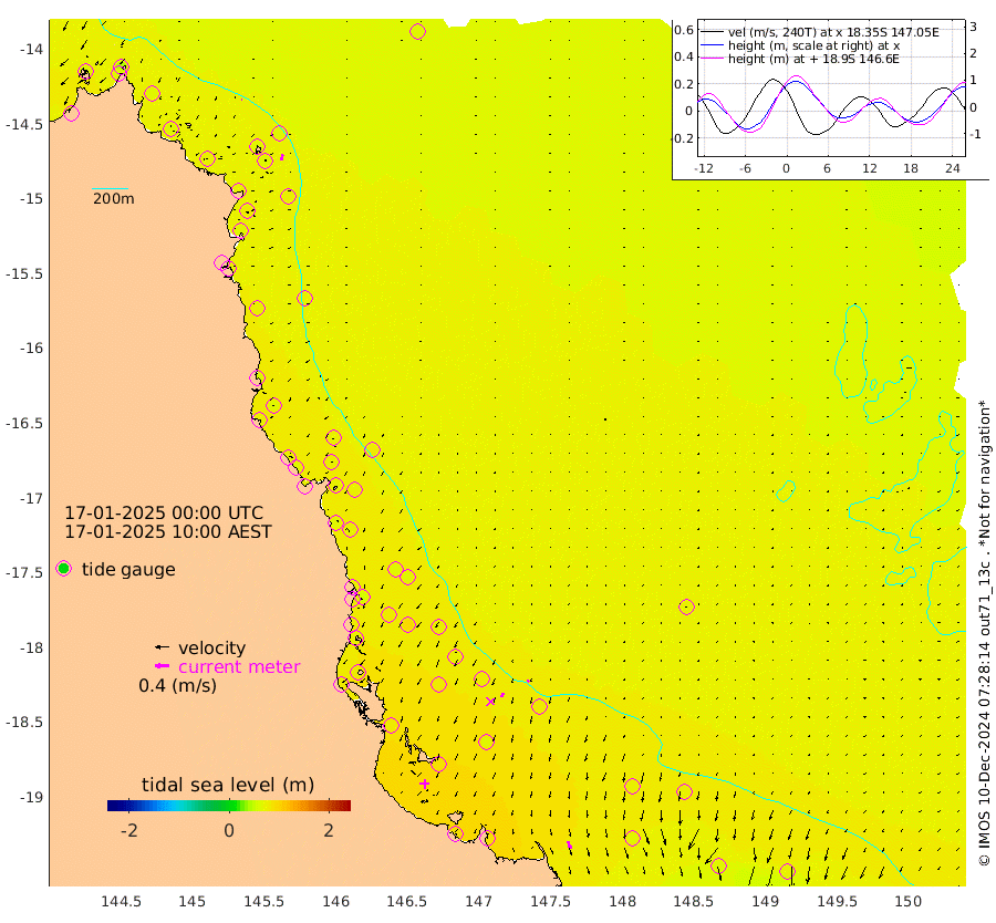 2cm/s -89T +11cm/s rms + 4cm/s -61T. GBRLSL 354m 16cm/s -169T +15cm/s rms + 2cm/s -84T. GBRLSH 32m 12cm/s -159T +15cm/s rms + 5cm/s -155T. GBRPPS 72m 6cm/s -148T +17cm/s rms + 13cm/s 115T. GBRMYR 223m 22cm/s 163T +18cm/s rms + 0cm/s -9T. NRSYON 29m 66cm Osprey Reef - West 67cm Stanley Island 41cm Pipon Islands 63cm Cape Melville 63cm Munro Reef 66cm Leggatt Island 73cm Normanby River 64cm Carter Reef 64cm Lizard Island (QLD) 72cm East Petherbridge Island 67cm North Direction Island 74cm Cape Flattery 70cm Ribbon Reef No.9 79cm Low Wooded Island 66cm Cape Bedford 43cm Endeavour River North 68cm Cooktown 70cm Cruiser Passage 72cm East Hope Island 59cm Bailay Creek 63cm Low Islets 70cm Port Douglas 72cm Palm Cove 66cm Yorkeys Knob 69cm Michaelmas Cay 79cm Euston Reef 72cm Cairns 72cm Green Island 68cm Fitzroy Island 73cm Sudbury Cay 66cm High Island 68cm Russell Island 67cm Peart Reef 62cm Nathan Reef 71cm Mourilyan Harbour 75cm Cowley Beach 58cm North Barnard Island 82cm Eddy Reef 92cm Beaver Reef 74cm Unnamed Reef No. 1 73cm Flinders Reef 76cm Clump Point 73cm Dunk Island 71cm Barnett Patches 79cm Goold Island 80cm Cardwell 76cm Britomart Reef 77cm Pith Reef 80cm Dip Reef 81cm Lucinda (Offshore) 65cm John Brewer Reef 88cm Albino Rock 75cm Shrimp Reef 74cm Jaguar Reef 86cm Townsville 83cm Cape Ferguson 65cm Stanley Reef 61cm Wallaby Reef 69cm Kennedy Reef