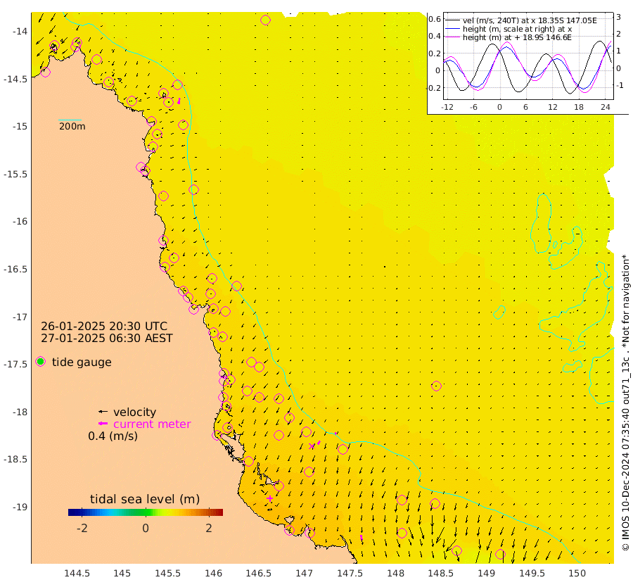 0cm/s -81T +11cm/s rms + 4cm/s -61T. GBRLSL 354m 27cm/s -170T +15cm/s rms + 2cm/s -84T. GBRLSH 32m 18cm/s -156T +15cm/s rms + 5cm/s -155T. GBRPPS 72m 9cm/s -149T +17cm/s rms + 13cm/s 115T. GBRMYR 223m 22cm/s 170T +18cm/s rms + 0cm/s -9T. NRSYON 29m 66cm Osprey Reef - West 76cm Stanley Island 55cm Pipon Islands 70cm Cape Melville 74cm Munro Reef 72cm Leggatt Island 75cm Normanby River 80cm Carter Reef 77cm Lizard Island (QLD) 74cm East Petherbridge Island 72cm North Direction Island 83cm Cape Flattery 73cm Ribbon Reef No.9 76cm Low Wooded Island 70cm Cape Bedford 35cm Endeavour River North 79cm Cooktown 74cm Cruiser Passage 93cm East Hope Island 64cm Bailay Creek 74cm Low Islets 81cm Port Douglas 84cm Palm Cove 79cm Yorkeys Knob 75cm Michaelmas Cay 87cm Euston Reef 83cm Cairns 86cm Green Island 91cm Fitzroy Island 84cm Sudbury Cay 81cm High Island 81cm Russell Island 82cm Peart Reef 78cm Nathan Reef 82cm Mourilyan Harbour 88cm Cowley Beach 73cm North Barnard Island 80cm Eddy Reef 106cm Beaver Reef 83cm Unnamed Reef No. 1 83cm Flinders Reef 88cm Clump Point 90cm Dunk Island 83cm Barnett Patches 94cm Goold Island 91cm Cardwell 96cm Britomart Reef 84cm Pith Reef 82cm Dip Reef 94cm Lucinda (Offshore) 88cm John Brewer Reef 98cm Albino Rock 92cm Shrimp Reef 89cm Jaguar Reef 101cm Townsville 99cm Cape Ferguson 76cm Stanley Reef 69cm Wallaby Reef 78cm Kennedy Reef