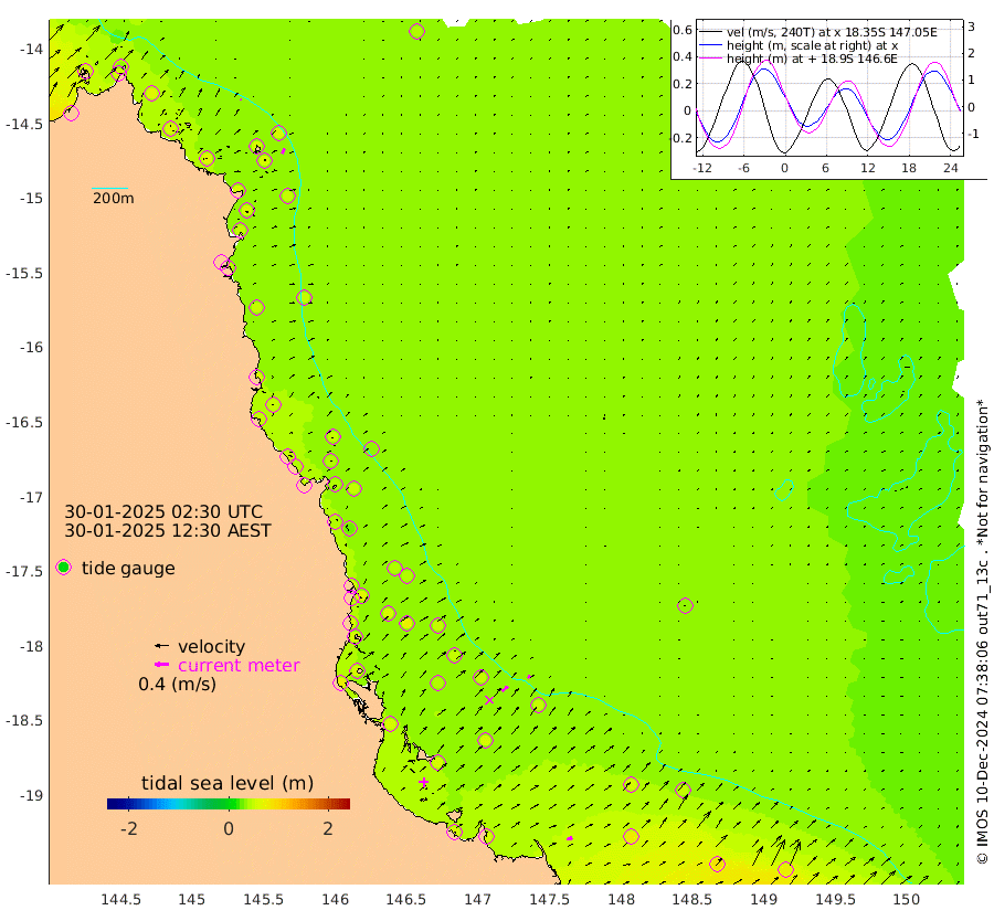 2cm/s -61T +11cm/s rms + 4cm/s -61T. GBRLSL 354m 17cm/s 22T +15cm/s rms + 2cm/s -84T. GBRLSH 32m 20cm/s 48T +15cm/s rms + 5cm/s -155T. GBRPPS 72m 9cm/s 41T +17cm/s rms + 13cm/s 115T. GBRMYR 223m 16cm/s 74T +18cm/s rms + 0cm/s -9T. NRSYON 29m 45cm Osprey Reef - West 60cm Stanley Island 37cm Pipon Islands 58cm Cape Melville 62cm Munro Reef 59cm Leggatt Island 62cm Normanby River 59cm Carter Reef 53cm Lizard Island (QLD) 62cm East Petherbridge Island 56cm North Direction Island 55cm Cape Flattery 50cm Ribbon Reef No.9 53cm Low Wooded Island 52cm Cape Bedford 32cm Endeavour River North 51cm Cooktown 46cm Cruiser Passage 48cm East Hope Island 61cm Bailay Creek 48cm Low Islets 50cm Port Douglas 45cm Palm Cove 44cm Yorkeys Knob 52cm Michaelmas Cay 37cm Euston Reef 52cm Cairns 38cm Green Island 41cm Fitzroy Island 46cm Sudbury Cay 41cm High Island 27cm Russell Island 42cm Peart Reef 41cm Nathan Reef 54cm Mourilyan Harbour 50cm Cowley Beach 66cm North Barnard Island 58cm Eddy Reef 70cm Beaver Reef 47cm Unnamed Reef No. 1 37cm Flinders Reef 53cm Clump Point 53cm Dunk Island 52cm Barnett Patches 54cm Goold Island 71cm Cardwell 41cm Britomart Reef 51cm Pith Reef 46cm Dip Reef 59cm Lucinda (Offshore) 56cm John Brewer Reef 54cm Albino Rock 58cm Shrimp Reef 45cm Jaguar Reef 58cm Townsville 56cm Cape Ferguson 78cm Stanley Reef 89cm Wallaby Reef 70cm Kennedy Reef