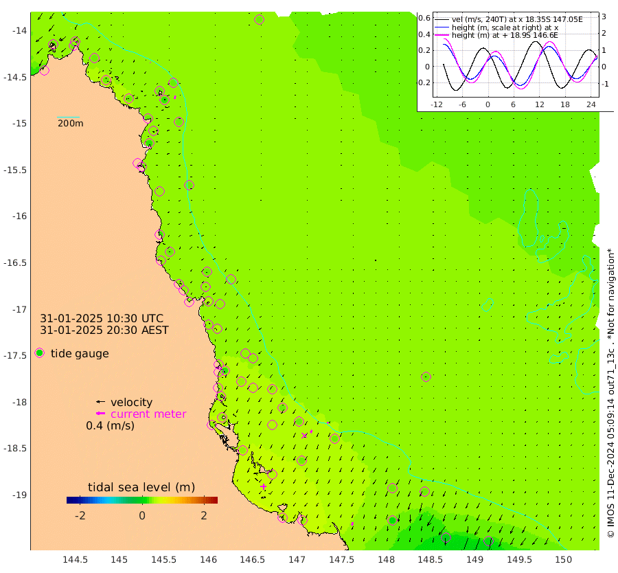 2cm/s 131T +11cm/s rms + 4cm/s -61T. GBRLSL 354m 14cm/s -170T +15cm/s rms + 2cm/s -84T. GBRLSH 32m 13cm/s -149T +15cm/s rms + 5cm/s -155T. GBRPPS 72m 6cm/s -148T +17cm/s rms + 13cm/s 115T. GBRMYR 223m 13cm/s -174T +18cm/s rms + 0cm/s -9T. NRSYON 29m 26cm Osprey Reef - West 28cm Stanley Island 32cm Pipon Islands 23cm Cape Melville 29cm Munro Reef 30cm Leggatt Island 32cm Normanby River 29cm Carter Reef 24cm Lizard Island (QLD) 25cm East Petherbridge Island 22cm North Direction Island 29cm Cape Flattery 28cm Ribbon Reef No.9 32cm Low Wooded Island 22cm Cape Bedford 4cm Endeavour River North 28cm Cooktown 28cm Cruiser Passage 33cm East Hope Island 20cm Bailay Creek 28cm Low Islets 31cm Port Douglas 35cm Palm Cove 33cm Yorkeys Knob 27cm Michaelmas Cay 33cm Euston Reef 33cm Cairns 36cm Green Island 40cm Fitzroy Island 33cm Sudbury Cay 34cm High Island 38cm Russell Island 34cm Peart Reef 34cm Nathan Reef 30cm Mourilyan Harbour 31cm Cowley Beach 17cm North Barnard Island 31cm Eddy Reef 40cm Beaver Reef 32cm Unnamed Reef No. 1 28cm Flinders Reef 34cm Clump Point 34cm Dunk Island 25cm Barnett Patches 36cm Goold Island 35cm Cardwell 41cm Britomart Reef 28cm Pith Reef 30cm Dip Reef 37cm Lucinda (Offshore) 30cm John Brewer Reef 40cm Albino Rock 23cm Shrimp Reef 26cm Jaguar Reef 40cm Townsville 36cm Cape Ferguson 10cm Stanley Reef -1cm Wallaby Reef 10cm Kennedy Reef