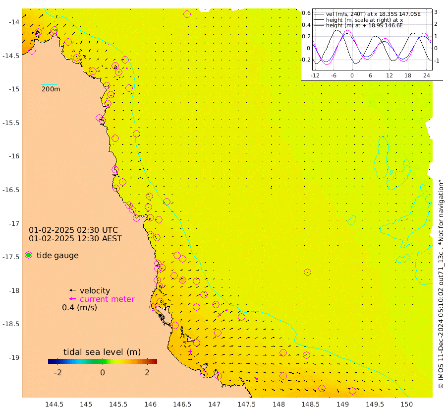 3cm/s -69T +11cm/s rms + 4cm/s -61T. GBRLSL 354m 8cm/s 27T +15cm/s rms + 2cm/s -84T. GBRLSH 32m 15cm/s 64T +15cm/s rms + 5cm/s -155T. GBRPPS 72m 5cm/s 58T +17cm/s rms + 13cm/s 115T. GBRMYR 223m 24cm/s 118T +18cm/s rms + 0cm/s -9T. NRSYON 29m 72cm Osprey Reef - West 90cm Stanley Island 72cm Pipon Islands 85cm Cape Melville 91cm Munro Reef 91cm Leggatt Island 103cm Normanby River 85cm Carter Reef 84cm Lizard Island (QLD) 85cm East Petherbridge Island 79cm North Direction Island 88cm Cape Flattery 80cm Ribbon Reef No.9 86cm Low Wooded Island 73cm Cape Bedford 53cm Endeavour River North 83cm Cooktown 76cm Cruiser Passage 82cm East Hope Island 83cm Bailay Creek 80cm Low Islets 84cm Port Douglas 82cm Palm Cove 81cm Yorkeys Knob 80cm Michaelmas Cay 58cm Euston Reef 87cm Cairns 73cm Green Island 85cm Fitzroy Island 81cm Sudbury Cay 78cm High Island 61cm Russell Island 80cm Peart Reef 77cm Nathan Reef 88cm Mourilyan Harbour 86cm Cowley Beach 104cm North Barnard Island 91cm Eddy Reef 117cm Beaver Reef 81cm Unnamed Reef No. 1 69cm Flinders Reef 91cm Clump Point 94cm Dunk Island 85cm Barnett Patches 96cm Goold Island 114cm Cardwell 83cm Britomart Reef 83cm Pith Reef 81cm Dip Reef 101cm Lucinda (Offshore) 96cm John Brewer Reef 98cm Albino Rock 91cm Shrimp Reef 77cm Jaguar Reef 105cm Townsville 99cm Cape Ferguson 106cm Stanley Reef 110cm Wallaby Reef 98cm Kennedy Reef