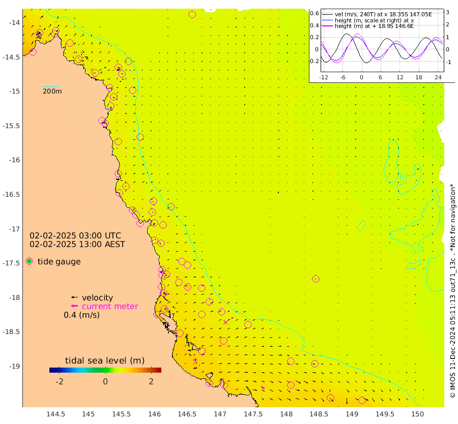 3cm/s -69T +11cm/s rms + 4cm/s -61T. GBRLSL 354m 5cm/s 29T +15cm/s rms + 2cm/s -84T. GBRLSH 32m 11cm/s 68T +15cm/s rms + 5cm/s -155T. GBRPPS 72m 3cm/s 65T +17cm/s rms + 13cm/s 115T. GBRMYR 223m 23cm/s 123T +18cm/s rms + 0cm/s -9T. NRSYON 29m 63cm Osprey Reef - West 76cm Stanley Island 67cm Pipon Islands 72cm Cape Melville 78cm Munro Reef 78cm Leggatt Island 90cm Normanby River 72cm Carter Reef 73cm Lizard Island (QLD) 71cm East Petherbridge Island 66cm North Direction Island 75cm Cape Flattery 70cm Ribbon Reef No.9 77cm Low Wooded Island 61cm Cape Bedford 48cm Endeavour River North 72cm Cooktown 67cm Cruiser Passage 70cm East Hope Island 72cm Bailay Creek 70cm Low Islets 74cm Port Douglas 72cm Palm Cove 72cm Yorkeys Knob 68cm Michaelmas Cay 46cm Euston Reef 76cm Cairns 63cm Green Island 75cm Fitzroy Island 70cm Sudbury Cay 70cm High Island 53cm Russell Island 70cm Peart Reef 69cm Nathan Reef 77cm Mourilyan Harbour 74cm Cowley Beach 92cm North Barnard Island 79cm Eddy Reef 103cm Beaver Reef 71cm Unnamed Reef No. 1 59cm Flinders Reef 79cm Clump Point 84cm Dunk Island 75cm Barnett Patches 85cm Goold Island 99cm Cardwell 74cm Britomart Reef 71cm Pith Reef 72cm Dip Reef 89cm Lucinda (Offshore) 85cm John Brewer Reef 86cm Albino Rock 78cm Shrimp Reef 66cm Jaguar Reef 92cm Townsville 87cm Cape Ferguson 92cm Stanley Reef 94cm Wallaby Reef 84cm Kennedy Reef