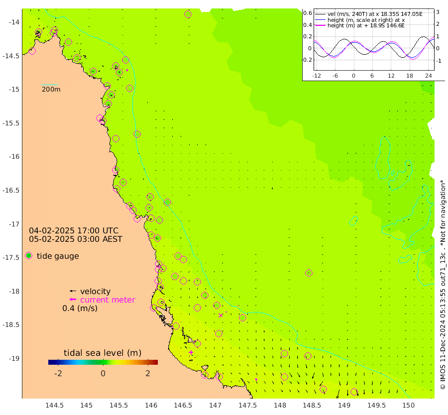 1cm/s 78T +11cm/s rms + 4cm/s -61T. GBRLSL 354m 9cm/s -177T +15cm/s rms + 2cm/s -84T. GBRLSH 32m 4cm/s 167T +15cm/s rms + 5cm/s -155T. GBRPPS 72m 2cm/s -161T +17cm/s rms + 13cm/s 115T. GBRMYR 223m 15cm/s 148T +18cm/s rms + 0cm/s -9T. NRSYON 29m 30cm Osprey Reef - West 31cm Stanley Island 45cm Pipon Islands 33cm Cape Melville 35cm Munro Reef 35cm Leggatt Island 33cm Normanby River 37cm Carter Reef 36cm Lizard Island (QLD) 24cm East Petherbridge Island 26cm North Direction Island 34cm Cape Flattery 31cm Ribbon Reef No.9 27cm Low Wooded Island 25cm Cape Bedford 15cm Endeavour River North 35cm Cooktown 30cm Cruiser Passage 38cm East Hope Island 26cm Bailay Creek 32cm Low Islets 38cm Port Douglas 39cm Palm Cove 40cm Yorkeys Knob 32cm Michaelmas Cay 25cm Euston Reef 39cm Cairns 35cm Green Island 45cm Fitzroy Island 36cm Sudbury Cay 40cm High Island 28cm Russell Island 36cm Peart Reef 39cm Nathan Reef 40cm Mourilyan Harbour 39cm Cowley Beach 43cm North Barnard Island 36cm Eddy Reef 49cm Beaver Reef 38cm Unnamed Reef No. 1 34cm Flinders Reef 43cm Clump Point 47cm Dunk Island 35cm Barnett Patches 48cm Goold Island 49cm Cardwell 47cm Britomart Reef 35cm Pith Reef 35cm Dip Reef 47cm Lucinda (Offshore) 45cm John Brewer Reef 45cm Albino Rock 42cm Shrimp Reef 43cm Jaguar Reef 52cm Townsville 50cm Cape Ferguson 46cm Stanley Reef 47cm Wallaby Reef 55cm Kennedy Reef