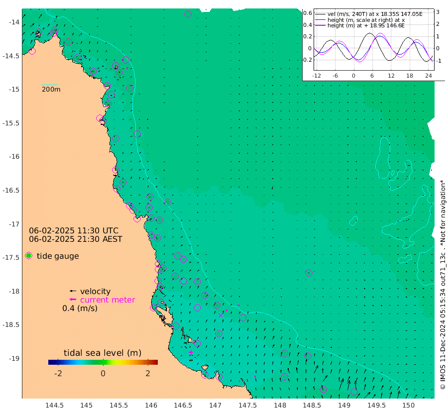 1cm/s 127T +11cm/s rms + 4cm/s -61T. GBRLSL 354m 15cm/s 10T +15cm/s rms + 2cm/s -84T. GBRLSH 32m 12cm/s 20T +15cm/s rms + 5cm/s -155T. GBRPPS 72m 6cm/s 30T +17cm/s rms + 13cm/s 115T. GBRMYR 223m 15cm/s -11T +18cm/s rms + 0cm/s -9T. NRSYON 29m -57cm Osprey Reef - West -51cm Stanley Island -47cm Pipon Islands -54cm Cape Melville -55cm Munro Reef -56cm Leggatt Island -50cm Normanby River -61cm Carter Reef -61cm Lizard Island (QLD) -50cm East Petherbridge Island -52cm North Direction Island -60cm Cape Flattery -60cm Ribbon Reef No.9 -69cm Low Wooded Island -51cm Cape Bedford -29cm Endeavour River North -61cm Cooktown -62cm Cruiser Passage -65cm East Hope Island -47cm Bailay Creek -57cm Low Islets -63cm Port Douglas -68cm Palm Cove -66cm Yorkeys Knob -54cm Michaelmas Cay -50cm Euston Reef -64cm Cairns -63cm Green Island -63cm Fitzroy Island -60cm Sudbury Cay -66cm High Island -54cm Russell Island -63cm Peart Reef -64cm Nathan Reef -64cm Mourilyan Harbour -63cm Cowley Beach -53cm North Barnard Island -64cm Eddy Reef -79cm Beaver Reef -66cm Unnamed Reef No. 1 -65cm Flinders Reef -67cm Clump Point -70cm Dunk Island -62cm Barnett Patches -73cm Goold Island -67cm Cardwell -76cm Britomart Reef -60cm Pith Reef -70cm Dip Reef -70cm Lucinda (Offshore) -66cm John Brewer Reef -69cm Albino Rock -67cm Shrimp Reef -65cm Jaguar Reef -74cm Townsville -73cm Cape Ferguson -65cm Stanley Reef -57cm Wallaby Reef -71cm Kennedy Reef