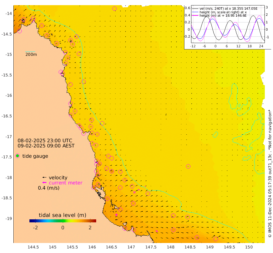 1cm/s -74T +11cm/s rms + 4cm/s -61T. GBRLSL 354m 4cm/s 72T +15cm/s rms + 2cm/s -84T. GBRLSH 32m 14cm/s 76T +15cm/s rms + 5cm/s -155T. GBRPPS 72m 5cm/s 71T +17cm/s rms + 13cm/s 115T. GBRMYR 223m 22cm/s 117T +18cm/s rms + 0cm/s -9T. NRSYON 29m 102cm Osprey Reef - West 129cm Stanley Island 86cm Pipon Islands 113cm Cape Melville 121cm Munro Reef 124cm Leggatt Island 139cm Normanby River 118cm Carter Reef 114cm Lizard Island (QLD) 121cm East Petherbridge Island 112cm North Direction Island 118cm Cape Flattery 109cm Ribbon Reef No.9 114cm Low Wooded Island 107cm Cape Bedford 72cm Endeavour River North 115cm Cooktown 105cm Cruiser Passage 111cm East Hope Island 109cm Bailay Creek 109cm Low Islets 117cm Port Douglas 114cm Palm Cove 116cm Yorkeys Knob 114cm Michaelmas Cay 90cm Euston Reef 120cm Cairns 109cm Green Island 107cm Fitzroy Island 114cm Sudbury Cay 112cm High Island 102cm Russell Island 118cm Peart Reef 111cm Nathan Reef 120cm Mourilyan Harbour 119cm Cowley Beach 131cm North Barnard Island 116cm Eddy Reef 157cm Beaver Reef 115cm Unnamed Reef No. 1 97cm Flinders Reef 125cm Clump Point 131cm Dunk Island 117cm Barnett Patches 134cm Goold Island 150cm Cardwell 119cm Britomart Reef 110cm Pith Reef 111cm Dip Reef 138cm Lucinda (Offshore) 134cm John Brewer Reef 132cm Albino Rock 118cm Shrimp Reef 103cm Jaguar Reef 143cm Townsville 136cm Cape Ferguson 139cm Stanley Reef 133cm Wallaby Reef 119cm Kennedy Reef