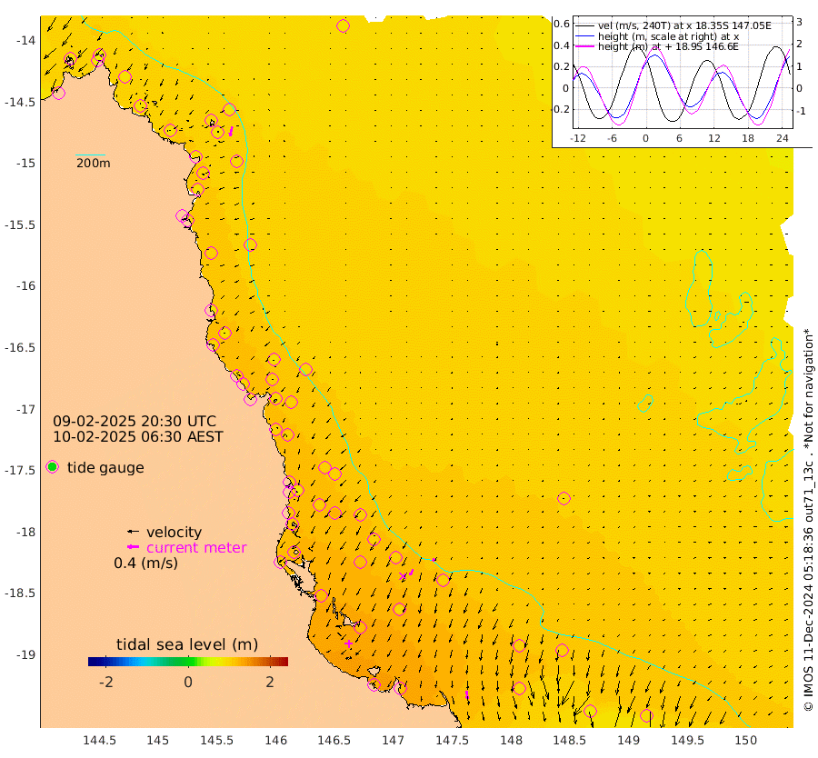 0cm/s -128T +11cm/s rms + 4cm/s -61T. GBRLSL 354m 34cm/s -168T +15cm/s rms + 2cm/s -84T. GBRLSH 32m 23cm/s -154T +15cm/s rms + 5cm/s -155T. GBRPPS 72m 11cm/s -150T +17cm/s rms + 13cm/s 115T. GBRMYR 223m 27cm/s 172T +18cm/s rms + 0cm/s -9T. NRSYON 29m 89cm Osprey Reef - West 89cm Stanley Island 71cm Pipon Islands 81cm Cape Melville 84cm Munro Reef 88cm Leggatt Island 96cm Normanby River 85cm Carter Reef 91cm Lizard Island (QLD) 89cm East Petherbridge Island 88cm North Direction Island 92cm Cape Flattery 91cm Ribbon Reef No.9 100cm Low Wooded Island 85cm Cape Bedford 61cm Endeavour River North 94cm Cooktown 93cm Cruiser Passage 99cm East Hope Island 77cm Bailay Creek 88cm Low Islets 98cm Port Douglas 104cm Palm Cove 103cm Yorkeys Knob 89cm Michaelmas Cay 96cm Euston Reef 100cm Cairns 105cm Green Island 94cm Fitzroy Island 98cm Sudbury Cay 101cm High Island 100cm Russell Island 102cm Peart Reef 98cm Nathan Reef 99cm Mourilyan Harbour 105cm Cowley Beach 82cm North Barnard Island 99cm Eddy Reef 127cm Beaver Reef 105cm Unnamed Reef No. 1 97cm Flinders Reef 107cm Clump Point 107cm Dunk Island 103cm Barnett Patches 116cm Goold Island 107cm Cardwell 117cm Britomart Reef 101cm Pith Reef 105cm Dip Reef 113cm Lucinda (Offshore) 97cm John Brewer Reef 118cm Albino Rock 102cm Shrimp Reef 103cm Jaguar Reef 122cm Townsville 119cm Cape Ferguson 93cm Stanley Reef 78cm Wallaby Reef 95cm Kennedy Reef