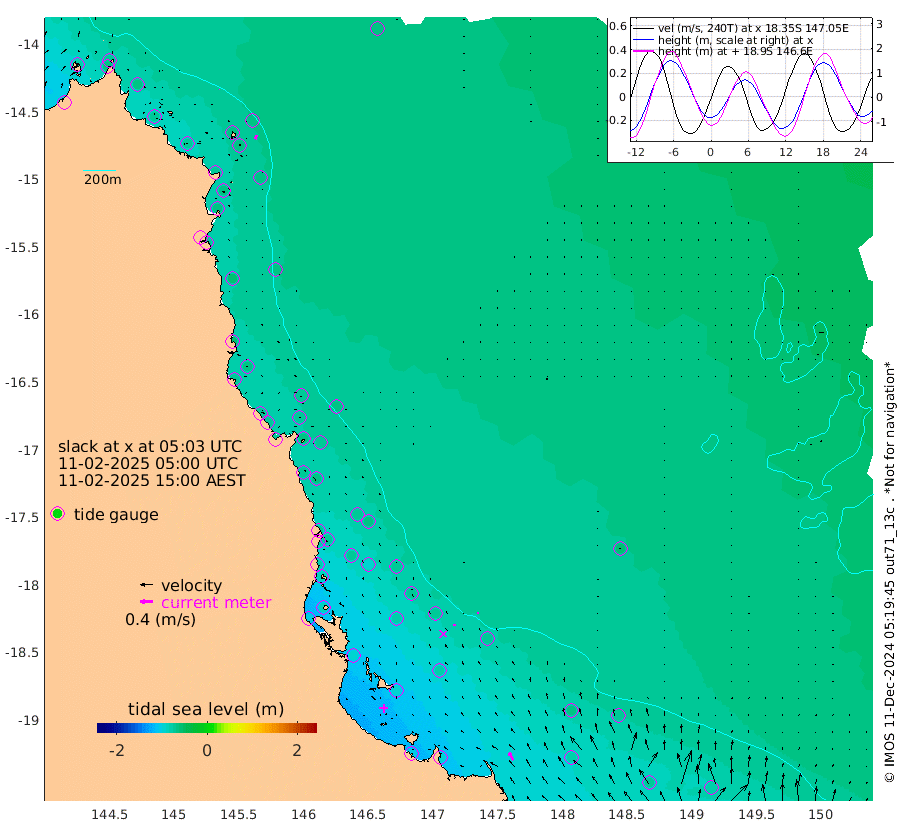 1cm/s -6T +11cm/s rms + 4cm/s -61T. GBRLSL 354m 13cm/s 11T +15cm/s rms + 2cm/s -84T. GBRLSH 32m 7cm/s -14T +15cm/s rms + 5cm/s -155T. GBRPPS 72m 5cm/s 5T +17cm/s rms + 13cm/s 115T. GBRMYR 223m 26cm/s -30T +18cm/s rms + 0cm/s -9T. NRSYON 29m -62cm Osprey Reef - West -76cm Stanley Island -74cm Pipon Islands -66cm Cape Melville -66cm Munro Reef -73cm Leggatt Island -95cm Normanby River -60cm Carter Reef -63cm Lizard Island (QLD) -71cm East Petherbridge Island -64cm North Direction Island -71cm Cape Flattery -64cm Ribbon Reef No.9 -67cm Low Wooded Island -62cm Cape Bedford -43cm Endeavour River North -68cm Cooktown -62cm Cruiser Passage -59cm East Hope Island -59cm Bailay Creek -61cm Low Islets -72cm Port Douglas -72cm Palm Cove -71cm Yorkeys Knob -68cm Michaelmas Cay -61cm Euston Reef -75cm Cairns -69cm Green Island -67cm Fitzroy Island -71cm Sudbury Cay -68cm High Island -67cm Russell Island -72cm Peart Reef -66cm Nathan Reef -74cm Mourilyan Harbour -79cm Cowley Beach -74cm North Barnard Island -74cm Eddy Reef -95cm Beaver Reef -72cm Unnamed Reef No. 1 -60cm Flinders Reef -82cm Clump Point -85cm Dunk Island -70cm Barnett Patches -89cm Goold Island -100cm Cardwell -81cm Britomart Reef -69cm Pith Reef -68cm Dip Reef -94cm Lucinda (Offshore) -77cm John Brewer Reef -96cm Albino Rock -67cm Shrimp Reef -68cm Jaguar Reef -102cm Townsville -95cm Cape Ferguson -79cm Stanley Reef -72cm Wallaby Reef -75cm Kennedy Reef