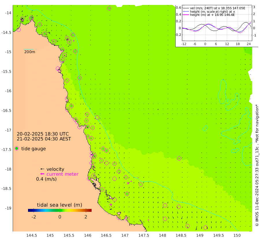 1cm/s 57T +11cm/s rms + 4cm/s -61T. GBRLSL 354m 12cm/s -172T +15cm/s rms + 2cm/s -84T. GBRLSH 32m 7cm/s -157T +15cm/s rms + 5cm/s -155T. GBRPPS 72m 4cm/s -147T +17cm/s rms + 13cm/s 115T. GBRMYR 223m 8cm/s 171T +18cm/s rms + 0cm/s -9T. NRSYON 29m 28cm Osprey Reef - West 28cm Stanley Island 21cm Pipon Islands 28cm Cape Melville 26cm Munro Reef 25cm Leggatt Island 21cm Normanby River 30cm Carter Reef 32cm Lizard Island (QLD) 31cm East Petherbridge Island 34cm North Direction Island 29cm Cape Flattery 27cm Ribbon Reef No.9 31cm Low Wooded Island 34cm Cape Bedford 18cm Endeavour River North 31cm Cooktown 29cm Cruiser Passage 37cm East Hope Island 31cm Bailay Creek 27cm Low Islets 32cm Port Douglas 33cm Palm Cove 29cm Yorkeys Knob 30cm Michaelmas Cay 43cm Euston Reef 32cm Cairns 33cm Green Island 24cm Fitzroy Island 31cm Sudbury Cay 33cm High Island 30cm Russell Island 28cm Peart Reef 27cm Nathan Reef 33cm Mourilyan Harbour 37cm Cowley Beach 26cm North Barnard Island 33cm Eddy Reef 40cm Beaver Reef 35cm Unnamed Reef No. 1 32cm Flinders Reef 35cm Clump Point 34cm Dunk Island 36cm Barnett Patches 38cm Goold Island 34cm Cardwell 38cm Britomart Reef 37cm Pith Reef 31cm Dip Reef 37cm Lucinda (Offshore) 28cm John Brewer Reef 39cm Albino Rock 43cm Shrimp Reef 44cm Jaguar Reef 41cm Townsville 41cm Cape Ferguson 42cm Stanley Reef 40cm Wallaby Reef 49cm Kennedy Reef