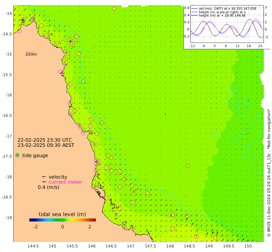 1cm/s -75T +11cm/s rms + 4cm/s -61T. GBRLSL 354m 9cm/s 26T +15cm/s rms + 2cm/s -84T. GBRLSH 32m 12cm/s 54T +15cm/s rms + 5cm/s -155T. GBRPPS 72m 6cm/s 45T +17cm/s rms + 13cm/s 115T. GBRMYR 223m 9cm/s 70T +18cm/s rms + 0cm/s -9T. NRSYON 29m 51cm Osprey Reef - West 62cm Stanley Island 27cm Pipon Islands 52cm Cape Melville 55cm Munro Reef 59cm Leggatt Island 65cm Normanby River 55cm Carter Reef 49cm Lizard Island (QLD) 65cm East Petherbridge Island 58cm North Direction Island 53cm Cape Flattery 53cm Ribbon Reef No.9 60cm Low Wooded Island 57cm Cape Bedford 38cm Endeavour River North 52cm Cooktown 50cm Cruiser Passage 42cm East Hope Island 57cm Bailay Creek 47cm Low Islets 51cm Port Douglas 49cm Palm Cove 49cm Yorkeys Knob 54cm Michaelmas Cay 44cm Euston Reef 52cm Cairns 46cm Green Island 28cm Fitzroy Island 48cm Sudbury Cay 44cm High Island 42cm Russell Island 49cm Peart Reef 43cm Nathan Reef 53cm Mourilyan Harbour 52cm Cowley Beach 51cm North Barnard Island 57cm Eddy Reef 69cm Beaver Reef 51cm Unnamed Reef No. 1 41cm Flinders Reef 54cm Clump Point 54cm Dunk Island 52cm Barnett Patches 57cm Goold Island 66cm Cardwell 46cm Britomart Reef 48cm Pith Reef 52cm Dip Reef 59cm Lucinda (Offshore) 51cm John Brewer Reef 56cm Albino Rock 48cm Shrimp Reef 42cm Jaguar Reef 59cm Townsville 56cm Cape Ferguson 69cm Stanley Reef 65cm Wallaby Reef 53cm Kennedy Reef