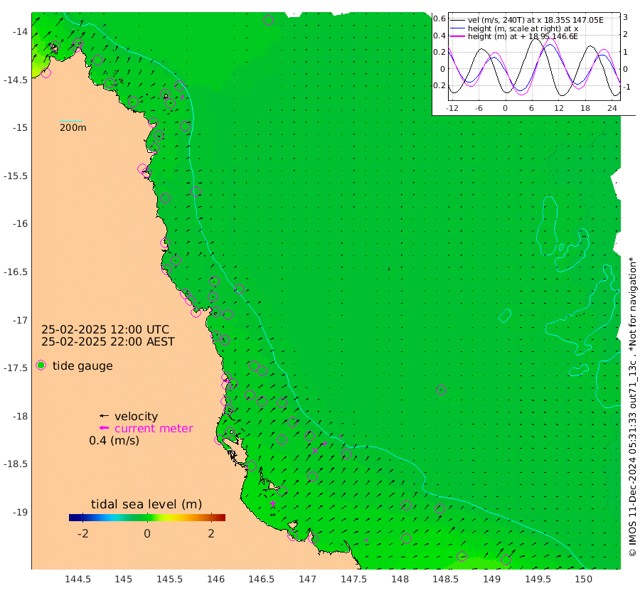 1cm/s 115T +11cm/s rms + 4cm/s -61T. GBRLSL 354m 18cm/s 16T +15cm/s rms + 2cm/s -84T. GBRLSH 32m 18cm/s 43T +15cm/s rms + 5cm/s -155T. GBRPPS 72m 7cm/s 50T +17cm/s rms + 13cm/s 115T. GBRMYR 223m 12cm/s 75T +18cm/s rms + 0cm/s -9T. NRSYON 29m -8cm Osprey Reef - West 6cm Stanley Island 10cm Pipon Islands 0cm Cape Melville -1cm Munro Reef 2cm Leggatt Island 18cm Normanby River -15cm Carter Reef -10cm Lizard Island (QLD) 6cm East Petherbridge Island -2cm North Direction Island -5cm Cape Flattery -11cm Ribbon Reef No.9 -17cm Low Wooded Island -1cm Cape Bedford 7cm Endeavour River North -9cm Cooktown -15cm Cruiser Passage -23cm East Hope Island 1cm Bailay Creek -9cm Low Islets -8cm Port Douglas -15cm Palm Cove -16cm Yorkeys Knob -4cm Michaelmas Cay -12cm Euston Reef -7cm Cairns -19cm Green Island -21cm Fitzroy Island -12cm Sudbury Cay -17cm High Island -16cm Russell Island -14cm Peart Reef -18cm Nathan Reef -7cm Mourilyan Harbour -5cm Cowley Beach 9cm North Barnard Island -3cm Eddy Reef -8cm Beaver Reef -14cm Unnamed Reef No. 1 -25cm Flinders Reef -6cm Clump Point -7cm Dunk Island -13cm Barnett Patches -6cm Goold Island 15cm Cardwell -21cm Britomart Reef -11cm Pith Reef -21cm Dip Reef 2cm Lucinda (Offshore) -9cm John Brewer Reef 1cm Albino Rock -15cm Shrimp Reef -15cm Jaguar Reef 2cm Townsville -2cm Cape Ferguson 7cm Stanley Reef 17cm Wallaby Reef 10cm Kennedy Reef
