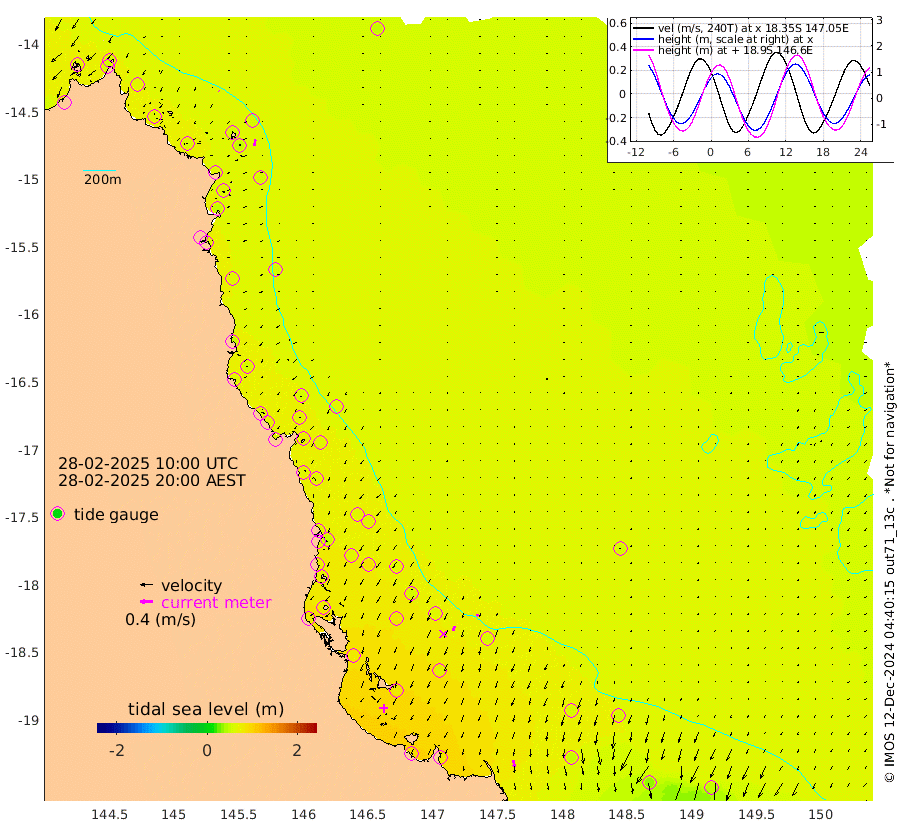 2cm/s 131T +11cm/s rms + 4cm/s -61T. GBRLSL 354m 19cm/s -171T +15cm/s rms + 2cm/s -84T. GBRLSH 32m 15cm/s -157T +15cm/s rms + 5cm/s -155T. GBRPPS 72m 7cm/s -155T +17cm/s rms + 13cm/s 115T. GBRMYR 223m 21cm/s 170T +18cm/s rms + 0cm/s -9T. NRSYON 29m 52cm Osprey Reef - West 62cm Stanley Island 59cm Pipon Islands 53cm Cape Melville 61cm Munro Reef 61cm Leggatt Island 69cm Normanby River 59cm Carter Reef 55cm Lizard Island (QLD) 57cm East Petherbridge Island 52cm North Direction Island 62cm Cape Flattery 57cm Ribbon Reef No.9 62cm Low Wooded Island 51cm Cape Bedford 22cm Endeavour River North 60cm Cooktown 57cm Cruiser Passage 65cm East Hope Island 48cm Bailay Creek 58cm Low Islets 64cm Port Douglas 67cm Palm Cove 65cm Yorkeys Knob 58cm Michaelmas Cay 62cm Euston Reef 67cm Cairns 67cm Green Island 72cm Fitzroy Island 64cm Sudbury Cay 65cm High Island 67cm Russell Island 66cm Peart Reef 63cm Nathan Reef 64cm Mourilyan Harbour 66cm Cowley Beach 52cm North Barnard Island 63cm Eddy Reef 83cm Beaver Reef 63cm Unnamed Reef No. 1 57cm Flinders Reef 70cm Clump Point 71cm Dunk Island 57cm Barnett Patches 75cm Goold Island 77cm Cardwell 77cm Britomart Reef 60cm Pith Reef 60cm Dip Reef 77cm Lucinda (Offshore) 66cm John Brewer Reef 80cm Albino Rock 57cm Shrimp Reef 59cm Jaguar Reef 83cm Townsville 77cm Cape Ferguson 46cm Stanley Reef 34cm Wallaby Reef 46cm Kennedy Reef