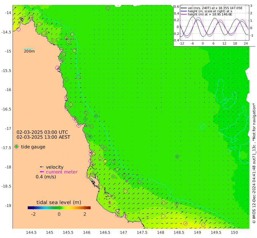 2cm/s -60T +11cm/s rms + 4cm/s -61T. GBRLSL 354m 16cm/s 19T +15cm/s rms + 2cm/s -84T. GBRLSH 32m 20cm/s 46T +15cm/s rms + 5cm/s -155T. GBRPPS 72m 8cm/s 43T +17cm/s rms + 13cm/s 115T. GBRMYR 223m 16cm/s 85T +18cm/s rms + 0cm/s -9T. NRSYON 29m 19cm Osprey Reef - West 32cm Stanley Island 33cm Pipon Islands 30cm Cape Melville 35cm Munro Reef 33cm Leggatt Island 41cm Normanby River 28cm Carter Reef 29cm Lizard Island (QLD) 29cm East Petherbridge Island 25cm North Direction Island 27cm Cape Flattery 23cm Ribbon Reef No.9 24cm Low Wooded Island 21cm Cape Bedford 21cm Endeavour River North 26cm Cooktown 20cm Cruiser Passage 21cm East Hope Island 36cm Bailay Creek 26cm Low Islets 26cm Port Douglas 21cm Palm Cove 22cm Yorkeys Knob 22cm Michaelmas Cay 1cm Euston Reef 27cm Cairns 13cm Green Island 22cm Fitzroy Island 20cm Sudbury Cay 19cm High Island 3cm Russell Island 20cm Peart Reef 21cm Nathan Reef 28cm Mourilyan Harbour 25cm Cowley Beach 49cm North Barnard Island 29cm Eddy Reef 40cm Beaver Reef 21cm Unnamed Reef No. 1 10cm Flinders Reef 28cm Clump Point 31cm Dunk Island 27cm Barnett Patches 30cm Goold Island 46cm Cardwell 17cm Britomart Reef 22cm Pith Reef 18cm Dip Reef 34cm Lucinda (Offshore) 35cm John Brewer Reef 30cm Albino Rock 31cm Shrimp Reef 19cm Jaguar Reef 34cm Townsville 31cm Cape Ferguson 51cm Stanley Reef 60cm Wallaby Reef 44cm Kennedy Reef