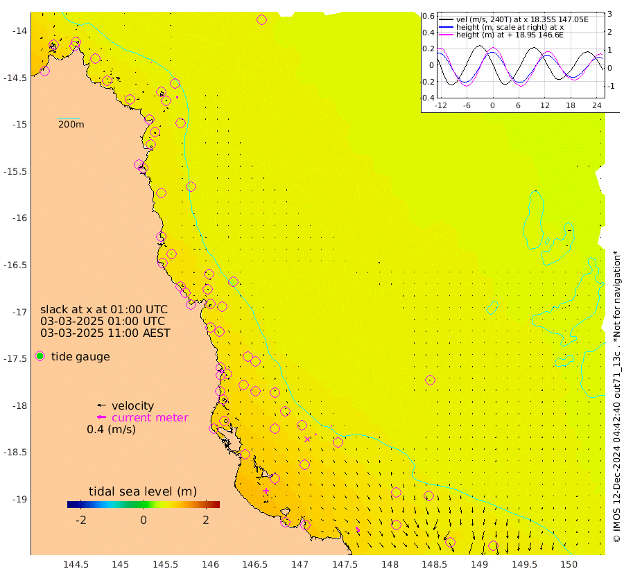 2cm/s -84T +11cm/s rms + 4cm/s -61T. GBRLSL 354m 7cm/s -175T +15cm/s rms + 2cm/s -84T. GBRLSH 32m 6cm/s 141T +15cm/s rms + 5cm/s -155T. GBRPPS 72m 3cm/s -176T +17cm/s rms + 13cm/s 115T. GBRMYR 223m 26cm/s 144T +18cm/s rms + 0cm/s -9T. NRSYON 29m 68cm Osprey Reef - West 74cm Stanley Island 67cm Pipon Islands 67cm Cape Melville 73cm Munro Reef 78cm Leggatt Island 94cm Normanby River 66cm Carter Reef 69cm Lizard Island (QLD) 71cm East Petherbridge Island 64cm North Direction Island 77cm Cape Flattery 73cm Ribbon Reef No.9 83cm Low Wooded Island 60cm Cape Bedford 50cm Endeavour River North 73cm Cooktown 71cm Cruiser Passage 68cm East Hope Island 64cm Bailay Creek 69cm Low Islets 76cm Port Douglas 77cm Palm Cove 76cm Yorkeys Knob 68cm Michaelmas Cay 51cm Euston Reef 78cm Cairns 69cm Green Island 75cm Fitzroy Island 73cm Sudbury Cay 71cm High Island 61cm Russell Island 74cm Peart Reef 71cm Nathan Reef 78cm Mourilyan Harbour 76cm Cowley Beach 80cm North Barnard Island 84cm Eddy Reef 104cm Beaver Reef 75cm Unnamed Reef No. 1 66cm Flinders Reef 82cm Clump Point 86cm Dunk Island 73cm Barnett Patches 89cm Goold Island 98cm Cardwell 80cm Britomart Reef 71cm Pith Reef 79cm Dip Reef 92cm Lucinda (Offshore) 81cm John Brewer Reef 92cm Albino Rock 72cm Shrimp Reef 66cm Jaguar Reef 97cm Townsville 90cm Cape Ferguson 78cm Stanley Reef 72cm Wallaby Reef 74cm Kennedy Reef