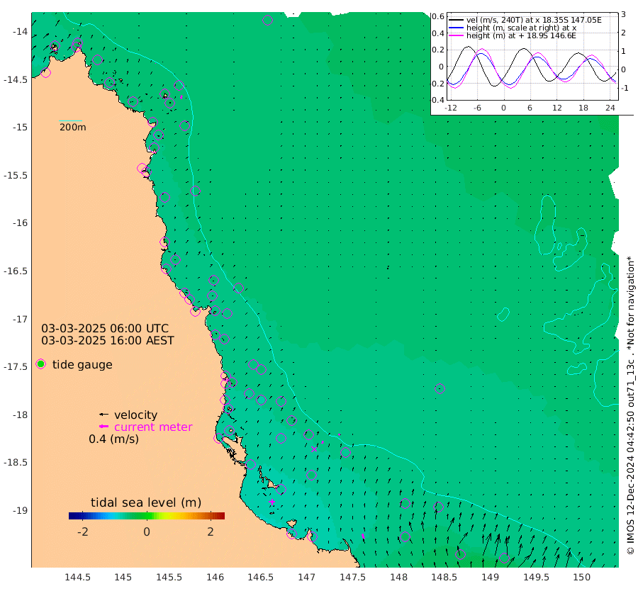 1cm/s -16T +11cm/s rms + 4cm/s -61T. GBRLSL 354m 14cm/s 12T +15cm/s rms + 2cm/s -84T. GBRLSH 32m 10cm/s 16T +15cm/s rms + 5cm/s -155T. GBRPPS 72m 6cm/s 29T +17cm/s rms + 13cm/s 115T. GBRMYR 223m 21cm/s -18T +18cm/s rms + 0cm/s -9T. NRSYON 29m -58cm Osprey Reef - West -56cm Stanley Island -45cm Pipon Islands -52cm Cape Melville -54cm Munro Reef -60cm Leggatt Island -65cm Normanby River -54cm Carter Reef -52cm Lizard Island (QLD) -53cm East Petherbridge Island -49cm North Direction Island -62cm Cape Flattery -60cm Ribbon Reef No.9 -64cm Low Wooded Island -49cm Cape Bedford -34cm Endeavour River North -58cm Cooktown -59cm Cruiser Passage -56cm East Hope Island -41cm Bailay Creek -53cm Low Islets -61cm Port Douglas -64cm Palm Cove -61cm Yorkeys Knob -59cm Michaelmas Cay -57cm Euston Reef -63cm Cairns -61cm Green Island -63cm Fitzroy Island -63cm Sudbury Cay -59cm High Island -59cm Russell Island -60cm Peart Reef -58cm Nathan Reef -62cm Mourilyan Harbour -61cm Cowley Beach -50cm North Barnard Island -69cm Eddy Reef -80cm Beaver Reef -64cm Unnamed Reef No. 1 -62cm Flinders Reef -67cm Clump Point -69cm Dunk Island -54cm Barnett Patches -71cm Goold Island -73cm Cardwell -69cm Britomart Reef -60cm Pith Reef -69cm Dip Reef -72cm Lucinda (Offshore) -60cm John Brewer Reef -75cm Albino Rock -55cm Shrimp Reef -59cm Jaguar Reef -77cm Townsville -72cm Cape Ferguson -49cm Stanley Reef -42cm Wallaby Reef -56cm Kennedy Reef