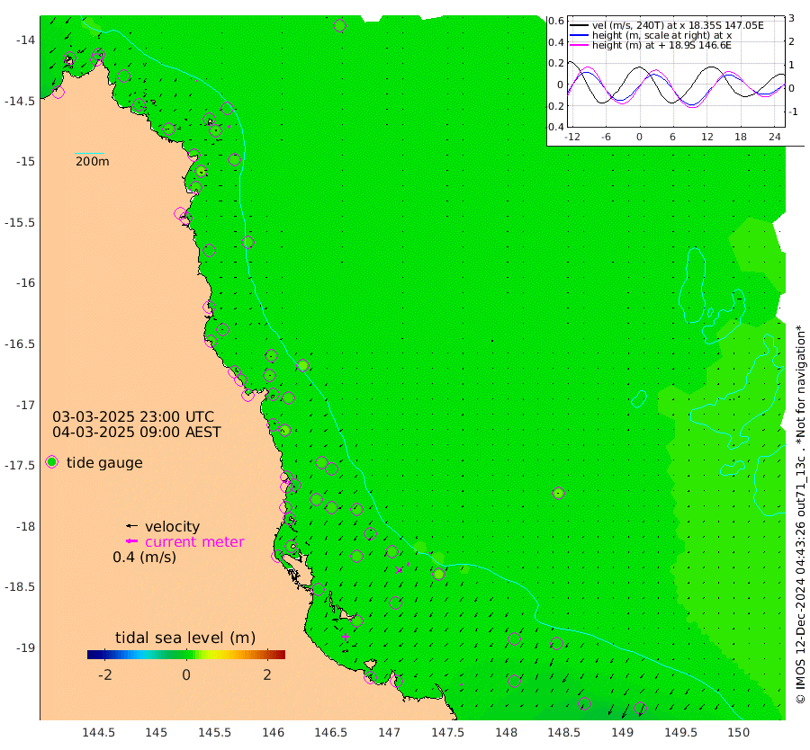 1cm/s -119T +11cm/s rms + 4cm/s -61T. GBRLSL 354m 10cm/s -153T +15cm/s rms + 2cm/s -84T. GBRLSH 32m 11cm/s -142T +15cm/s rms + 5cm/s -155T. GBRPPS 72m 5cm/s -140T +17cm/s rms + 13cm/s 115T. GBRMYR 223m 8cm/s -144T +18cm/s rms + 0cm/s -9T. NRSYON 29m 19cm Osprey Reef - West 13cm Stanley Island -6cm Pipon Islands 10cm Cape Melville 8cm Munro Reef 13cm Leggatt Island 15cm Normanby River 10cm Carter Reef 10cm Lizard Island (QLD) 18cm East Petherbridge Island 15cm North Direction Island 18cm Cape Flattery 19cm Ribbon Reef No.9 27cm Low Wooded Island 18cm Cape Bedford 12cm Endeavour River North 15cm Cooktown 20cm Cruiser Passage 14cm East Hope Island 7cm Bailay Creek 14cm Low Islets 15cm Port Douglas 18cm Palm Cove 15cm Yorkeys Knob 16cm Michaelmas Cay 25cm Euston Reef 15cm Cairns 20cm Green Island 10cm Fitzroy Island 17cm Sudbury Cay 14cm High Island 24cm Russell Island 17cm Peart Reef 14cm Nathan Reef 14cm Mourilyan Harbour 15cm Cowley Beach -2cm North Barnard Island 21cm Eddy Reef 19cm Beaver Reef 18cm Unnamed Reef No. 1 23cm Flinders Reef 15cm Clump Point 13cm Dunk Island 14cm Barnett Patches 15cm Goold Island 10cm Cardwell 18cm Britomart Reef 17cm Pith Reef 26cm Dip Reef 14cm Lucinda (Offshore) 9cm John Brewer Reef 18cm Albino Rock 9cm Shrimp Reef 12cm Jaguar Reef 15cm Townsville 14cm Cape Ferguson -2cm Stanley Reef -12cm Wallaby Reef -2cm Kennedy Reef