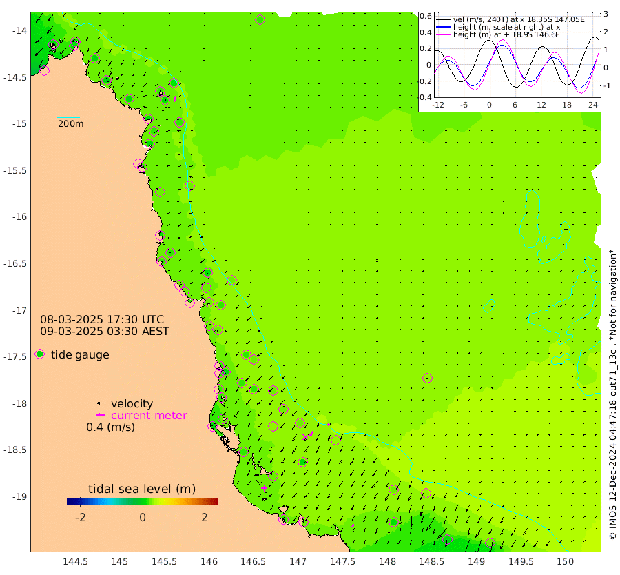 0cm/s -34T +11cm/s rms + 4cm/s -61T. GBRLSL 354m 25cm/s -163T +15cm/s rms + 2cm/s -84T. GBRLSH 32m 22cm/s -140T +15cm/s rms + 5cm/s -155T. GBRPPS 72m 11cm/s -139T +17cm/s rms + 13cm/s 115T. GBRMYR 223m 16cm/s -155T +18cm/s rms + 0cm/s -9T. NRSYON 29m 22cm Osprey Reef - West 3cm Stanley Island 11cm Pipon Islands 8cm Cape Melville 6cm Munro Reef 7cm Leggatt Island -1cm Normanby River 10cm Carter Reef 18cm Lizard Island (QLD) 4cm East Petherbridge Island 12cm North Direction Island 12cm Cape Flattery 18cm Ribbon Reef No.9 22cm Low Wooded Island 11cm Cape Bedford 17cm Endeavour River North 17cm Cooktown 23cm Cruiser Passage 25cm East Hope Island 7cm Bailay Creek 15cm Low Islets 19cm Port Douglas 25cm Palm Cove 25cm Yorkeys Knob 15cm Michaelmas Cay 27cm Euston Reef 19cm Cairns 28cm Green Island 24cm Fitzroy Island 22cm Sudbury Cay 28cm High Island 26cm Russell Island 21cm Peart Reef 24cm Nathan Reef 19cm Mourilyan Harbour 22cm Cowley Beach 4cm North Barnard Island 20cm Eddy Reef 22cm Beaver Reef 27cm Unnamed Reef No. 1 31cm Flinders Reef 21cm Clump Point 20cm Dunk Island 25cm Barnett Patches 24cm Goold Island 6cm Cardwell 32cm Britomart Reef 27cm Pith Reef 31cm Dip Reef 18cm Lucinda (Offshore) 10cm John Brewer Reef 23cm Albino Rock 25cm Shrimp Reef 34cm Jaguar Reef 21cm Townsville 24cm Cape Ferguson 10cm Stanley Reef 3cm Wallaby Reef 24cm Kennedy Reef