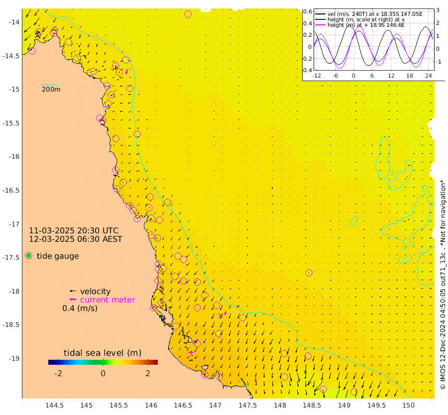 1cm/s -111T +11cm/s rms + 4cm/s -61T. GBRLSL 354m 29cm/s -166T +15cm/s rms + 2cm/s -84T. GBRLSH 32m 22cm/s -153T +15cm/s rms + 5cm/s -155T. GBRPPS 72m 11cm/s -150T +17cm/s rms + 13cm/s 115T. GBRMYR 223m 24cm/s 176T +18cm/s rms + 0cm/s -9T. NRSYON 29m 77cm Osprey Reef - West 78cm Stanley Island 58cm Pipon Islands 72cm Cape Melville 71cm Munro Reef 74cm Leggatt Island 84cm Normanby River 73cm Carter Reef 78cm Lizard Island (QLD) 83cm East Petherbridge Island 81cm North Direction Island 82cm Cape Flattery 79cm Ribbon Reef No.9 92cm Low Wooded Island 79cm Cape Bedford 48cm Endeavour River North 82cm Cooktown 82cm Cruiser Passage 88cm East Hope Island 70cm Bailay Creek 76cm Low Islets 85cm Port Douglas 90cm Palm Cove 85cm Yorkeys Knob 79cm Michaelmas Cay 94cm Euston Reef 86cm Cairns 91cm Green Island 80cm Fitzroy Island 86cm Sudbury Cay 86cm High Island 90cm Russell Island 87cm Peart Reef 81cm Nathan Reef 85cm Mourilyan Harbour 93cm Cowley Beach 65cm North Barnard Island 88cm Eddy Reef 109cm Beaver Reef 90cm Unnamed Reef No. 1 85cm Flinders Reef 92cm Clump Point 90cm Dunk Island 89cm Barnett Patches 98cm Goold Island 92cm Cardwell 101cm Britomart Reef 90cm Pith Reef 91cm Dip Reef 97cm Lucinda (Offshore) 80cm John Brewer Reef 103cm Albino Rock 88cm Shrimp Reef 89cm Jaguar Reef 105cm Townsville 102cm Cape Ferguson 76cm Stanley Reef 61cm Wallaby Reef 77cm Kennedy Reef