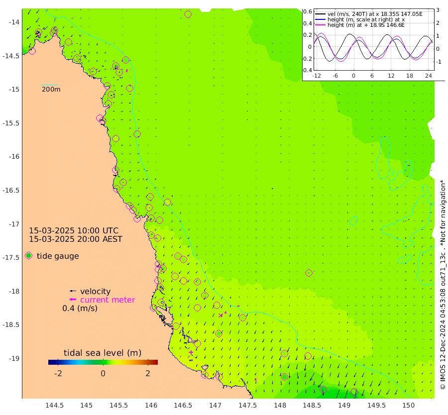 2cm/s 125T +11cm/s rms + 4cm/s -61T. GBRLSL 354m 16cm/s -168T +15cm/s rms + 2cm/s -84T. GBRLSH 32m 13cm/s -150T +15cm/s rms + 5cm/s -155T. GBRPPS 72m 6cm/s -149T +17cm/s rms + 13cm/s 115T. GBRMYR 223m 15cm/s 177T +18cm/s rms + 0cm/s -9T. NRSYON 29m 31cm Osprey Reef - West 35cm Stanley Island 23cm Pipon Islands 27cm Cape Melville 33cm Munro Reef 32cm Leggatt Island 37cm Normanby River 27cm Carter Reef 29cm Lizard Island (QLD) 37cm East Petherbridge Island 33cm North Direction Island 36cm Cape Flattery 32cm Ribbon Reef No.9 32cm Low Wooded Island 34cm Cape Bedford 20cm Endeavour River North 33cm Cooktown 32cm Cruiser Passage 40cm East Hope Island 28cm Bailay Creek 33cm Low Islets 36cm Port Douglas 36cm Palm Cove 31cm Yorkeys Knob 34cm Michaelmas Cay 52cm Euston Reef 37cm Cairns 39cm Green Island 37cm Fitzroy Island 37cm Sudbury Cay 34cm High Island 43cm Russell Island 34cm Peart Reef 31cm Nathan Reef 35cm Mourilyan Harbour 40cm Cowley Beach 24cm North Barnard Island 41cm Eddy Reef 47cm Beaver Reef 36cm Unnamed Reef No. 1 32cm Flinders Reef 39cm Clump Point 35cm Dunk Island 33cm Barnett Patches 40cm Goold Island 41cm Cardwell 39cm Britomart Reef 40cm Pith Reef 32cm Dip Reef 42cm Lucinda (Offshore) 29cm John Brewer Reef 48cm Albino Rock 34cm Shrimp Reef 38cm Jaguar Reef 46cm Townsville 43cm Cape Ferguson 17cm Stanley Reef 14cm Wallaby Reef 26cm Kennedy Reef