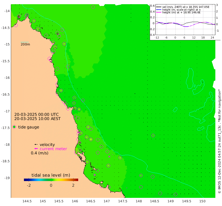 1cm/s -121T +11cm/s rms + 4cm/s -61T. GBRLSL 354m 3cm/s 6T +15cm/s rms + 2cm/s -84T. GBRLSH 32m 3cm/s 64T +15cm/s rms + 5cm/s -155T. GBRPPS 72m 1cm/s 42T +17cm/s rms + 13cm/s 115T. GBRMYR 223m 4cm/s 121T +18cm/s rms + 0cm/s -9T. NRSYON 29m 20cm Osprey Reef - West 23cm Stanley Island 7cm Pipon Islands 18cm Cape Melville 24cm Munro Reef 26cm Leggatt Island 30cm Normanby River 21cm Carter Reef 19cm Lizard Island (QLD) 20cm East Petherbridge Island 16cm North Direction Island 26cm Cape Flattery 23cm Ribbon Reef No.9 25cm Low Wooded Island 16cm Cape Bedford 16cm Endeavour River North 22cm Cooktown 21cm Cruiser Passage 21cm East Hope Island 15cm Bailay Creek 23cm Low Islets 22cm Port Douglas 22cm Palm Cove 22cm Yorkeys Knob 21cm Michaelmas Cay 9cm Euston Reef 23cm Cairns 19cm Green Island 26cm Fitzroy Island 23cm Sudbury Cay 19cm High Island 19cm Russell Island 24cm Peart Reef 22cm Nathan Reef 22cm Mourilyan Harbour 18cm Cowley Beach 25cm North Barnard Island 25cm Eddy Reef 33cm Beaver Reef 20cm Unnamed Reef No. 1 21cm Flinders Reef 22cm Clump Point 24cm Dunk Island 18cm Barnett Patches 22cm Goold Island 27cm Cardwell 19cm Britomart Reef 17cm Pith Reef 25cm Dip Reef 24cm Lucinda (Offshore) 27cm John Brewer Reef 22cm Albino Rock 16cm Shrimp Reef 11cm Jaguar Reef 23cm Townsville 20cm Cape Ferguson 13cm Stanley Reef 9cm Wallaby Reef 8cm Kennedy Reef
