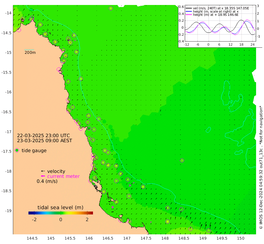 0cm/s -90T +11cm/s rms + 4cm/s -61T. GBRLSL 354m 9cm/s 22T +15cm/s rms + 2cm/s -84T. GBRLSH 32m 12cm/s 49T +15cm/s rms + 5cm/s -155T. GBRPPS 72m 6cm/s 39T +17cm/s rms + 13cm/s 115T. GBRMYR 223m 9cm/s 38T +18cm/s rms + 0cm/s -9T. NRSYON 29m 33cm Osprey Reef - West 41cm Stanley Island 12cm Pipon Islands 32cm Cape Melville 36cm Munro Reef 39cm Leggatt Island 43cm Normanby River 36cm Carter Reef 29cm Lizard Island (QLD) 44cm East Petherbridge Island 38cm North Direction Island 32cm Cape Flattery 35cm Ribbon Reef No.9 40cm Low Wooded Island 37cm Cape Bedford 24cm Endeavour River North 32cm Cooktown 32cm Cruiser Passage 23cm East Hope Island 39cm Bailay Creek 30cm Low Islets 32cm Port Douglas 30cm Palm Cove 31cm Yorkeys Knob 34cm Michaelmas Cay 24cm Euston Reef 32cm Cairns 27cm Green Island 11cm Fitzroy Island 28cm Sudbury Cay 24cm High Island 24cm Russell Island 30cm Peart Reef 26cm Nathan Reef 32cm Mourilyan Harbour 30cm Cowley Beach 28cm North Barnard Island 35cm Eddy Reef 44cm Beaver Reef 31cm Unnamed Reef No. 1 23cm Flinders Reef 32cm Clump Point 33cm Dunk Island 31cm Barnett Patches 33cm Goold Island 40cm Cardwell 26cm Britomart Reef 27cm Pith Reef 32cm Dip Reef 35cm Lucinda (Offshore) 30cm John Brewer Reef 31cm Albino Rock 25cm Shrimp Reef 20cm Jaguar Reef 34cm Townsville 31cm Cape Ferguson 42cm Stanley Reef 36cm Wallaby Reef 25cm Kennedy Reef