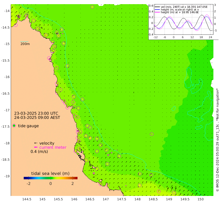 0cm/s -57T +11cm/s rms + 4cm/s -61T. GBRLSL 354m 10cm/s 26T +15cm/s rms + 2cm/s -84T. GBRLSH 32m 14cm/s 51T +15cm/s rms + 5cm/s -155T. GBRPPS 72m 7cm/s 41T +17cm/s rms + 13cm/s 115T. GBRMYR 223m 10cm/s 58T +18cm/s rms + 0cm/s -9T. NRSYON 29m 42cm Osprey Reef - West 56cm Stanley Island 25cm Pipon Islands 47cm Cape Melville 51cm Munro Reef 52cm Leggatt Island 59cm Normanby River 51cm Carter Reef 43cm Lizard Island (QLD) 61cm East Petherbridge Island 53cm North Direction Island 47cm Cape Flattery 46cm Ribbon Reef No.9 50cm Low Wooded Island 51cm Cape Bedford 28cm Endeavour River North 45cm Cooktown 42cm Cruiser Passage 37cm East Hope Island 53cm Bailay Creek 42cm Low Islets 45cm Port Douglas 41cm Palm Cove 40cm Yorkeys Knob 46cm Michaelmas Cay 38cm Euston Reef 45cm Cairns 37cm Green Island 23cm Fitzroy Island 40cm Sudbury Cay 34cm High Island 32cm Russell Island 40cm Peart Reef 36cm Nathan Reef 46cm Mourilyan Harbour 45cm Cowley Beach 44cm North Barnard Island 50cm Eddy Reef 61cm Beaver Reef 42cm Unnamed Reef No. 1 32cm Flinders Reef 46cm Clump Point 45cm Dunk Island 44cm Barnett Patches 47cm Goold Island 60cm Cardwell 38cm Britomart Reef 41cm Pith Reef 42cm Dip Reef 51cm Lucinda (Offshore) 44cm John Brewer Reef 48cm Albino Rock 42cm Shrimp Reef 34cm Jaguar Reef 51cm Townsville 48cm Cape Ferguson 60cm Stanley Reef 59cm Wallaby Reef 45cm Kennedy Reef