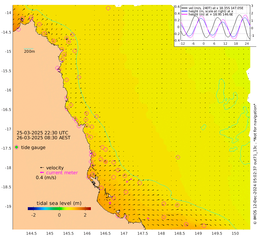1cm/s -62T +11cm/s rms + 4cm/s -61T. GBRLSL 354m 7cm/s 41T +15cm/s rms + 2cm/s -84T. GBRLSH 32m 15cm/s 71T +15cm/s rms + 5cm/s -155T. GBRPPS 72m 5cm/s 67T +17cm/s rms + 13cm/s 115T. GBRMYR 223m 22cm/s 116T +18cm/s rms + 0cm/s -9T. NRSYON 29m 88cm Osprey Reef - West 118cm Stanley Island 81cm Pipon Islands 105cm Cape Melville 112cm Munro Reef 111cm Leggatt Island 129cm Normanby River 107cm Carter Reef 101cm Lizard Island (QLD) 118cm East Petherbridge Island 106cm North Direction Island 110cm Cape Flattery 97cm Ribbon Reef No.9 101cm Low Wooded Island 101cm Cape Bedford 57cm Endeavour River North 103cm Cooktown 92cm Cruiser Passage 102cm East Hope Island 104cm Bailay Creek 99cm Low Islets 105cm Port Douglas 101cm Palm Cove 97cm Yorkeys Knob 101cm Michaelmas Cay 91cm Euston Reef 108cm Cairns 93cm Green Island 95cm Fitzroy Island 101cm Sudbury Cay 92cm High Island 86cm Russell Island 100cm Peart Reef 93cm Nathan Reef 108cm Mourilyan Harbour 110cm Cowley Beach 114cm North Barnard Island 111cm Eddy Reef 143cm Beaver Reef 100cm Unnamed Reef No. 1 84cm Flinders Reef 113cm Clump Point 113cm Dunk Island 105cm Barnett Patches 118cm Goold Island 140cm Cardwell 104cm Britomart Reef 102cm Pith Reef 95cm Dip Reef 126cm Lucinda (Offshore) 114cm John Brewer Reef 124cm Albino Rock 108cm Shrimp Reef 94cm Jaguar Reef 131cm Townsville 124cm Cape Ferguson 123cm Stanley Reef 124cm Wallaby Reef 110cm Kennedy Reef