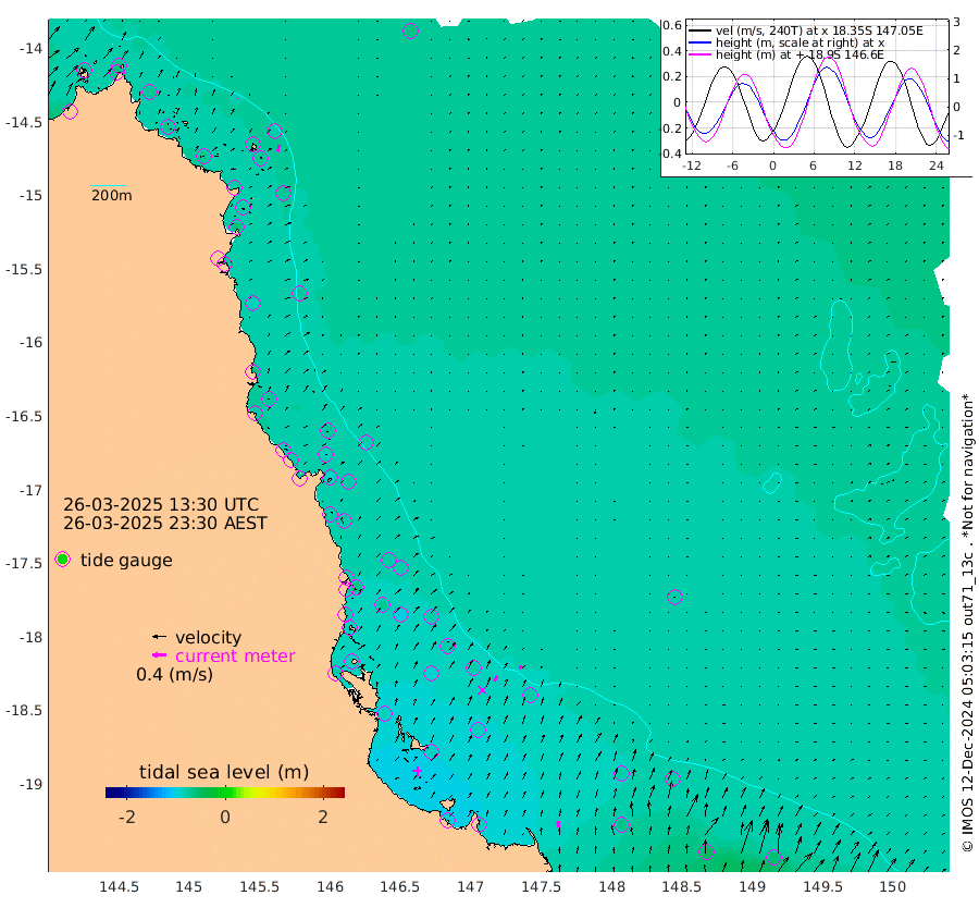 0cm/s -41T +11cm/s rms + 4cm/s -61T. GBRLSL 354m 20cm/s 11T +15cm/s rms + 2cm/s -84T. GBRLSH 32m 18cm/s 24T +15cm/s rms + 5cm/s -155T. GBRPPS 72m 9cm/s 28T +17cm/s rms + 13cm/s 115T. GBRMYR 223m 19cm/s -3T +18cm/s rms + 0cm/s -9T. NRSYON 29m -63cm Osprey Reef - West -71cm Stanley Island -61cm Pipon Islands -67cm Cape Melville -72cm Munro Reef -70cm Leggatt Island -71cm Normanby River -78cm Carter Reef -73cm Lizard Island (QLD) -68cm East Petherbridge Island -68cm North Direction Island -75cm Cape Flattery -69cm Ribbon Reef No.9 -78cm Low Wooded Island -64cm Cape Bedford -26cm Endeavour River North -75cm Cooktown -71cm Cruiser Passage -90cm East Hope Island -61cm Bailay Creek -74cm Low Islets -78cm Port Douglas -83cm Palm Cove -81cm Yorkeys Knob -69cm Michaelmas Cay -75cm Euston Reef -79cm Cairns -83cm Green Island -91cm Fitzroy Island -79cm Sudbury Cay -82cm High Island -81cm Russell Island -82cm Peart Reef -81cm Nathan Reef -77cm Mourilyan Harbour -80cm Cowley Beach -65cm North Barnard Island -73cm Eddy Reef -101cm Beaver Reef -79cm Unnamed Reef No. 1 -76cm Flinders Reef -82cm Clump Point -84cm Dunk Island -78cm Barnett Patches -88cm Goold Island -82cm Cardwell -96cm Britomart Reef -77cm Pith Reef -77cm Dip Reef -86cm Lucinda (Offshore) -85cm John Brewer Reef -87cm Albino Rock -81cm Shrimp Reef -76cm Jaguar Reef -93cm Townsville -90cm Cape Ferguson -63cm Stanley Reef -47cm Wallaby Reef -57cm Kennedy Reef