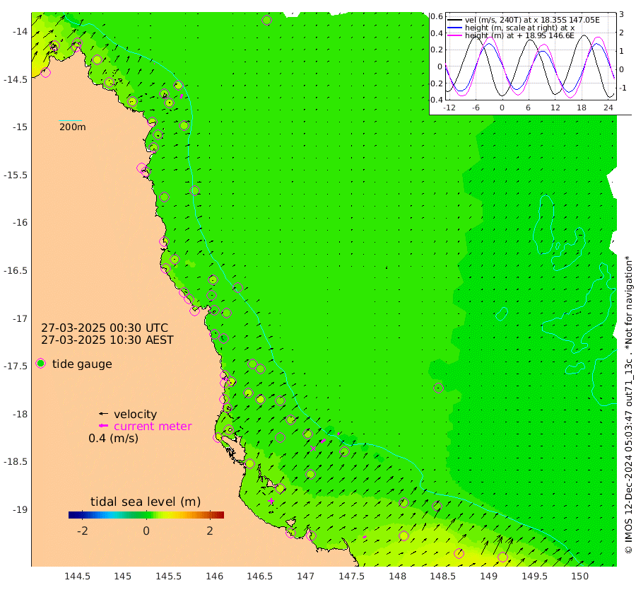 1cm/s -55T +11cm/s rms + 4cm/s -61T. GBRLSL 354m 20cm/s 21T +15cm/s rms + 2cm/s -84T. GBRLSH 32m 24cm/s 45T +15cm/s rms + 5cm/s -155T. GBRPPS 72m 10cm/s 39T +17cm/s rms + 13cm/s 115T. GBRMYR 223m 17cm/s 65T +18cm/s rms + 0cm/s -9T. NRSYON 29m 29cm Osprey Reef - West 47cm Stanley Island 28cm Pipon Islands 41cm Cape Melville 46cm Munro Reef 45cm Leggatt Island 53cm Normanby River 41cm Carter Reef 34cm Lizard Island (QLD) 48cm East Petherbridge Island 40cm North Direction Island 38cm Cape Flattery 32cm Ribbon Reef No.9 30cm Low Wooded Island 36cm Cape Bedford 23cm Endeavour River North 34cm Cooktown 27cm Cruiser Passage 27cm East Hope Island 45cm Bailay Creek 33cm Low Islets 33cm Port Douglas 27cm Palm Cove 26cm Yorkeys Knob 34cm Michaelmas Cay 19cm Euston Reef 35cm Cairns 19cm Green Island 21cm Fitzroy Island 29cm Sudbury Cay 20cm High Island 10cm Russell Island 25cm Peart Reef 24cm Nathan Reef 36cm Mourilyan Harbour 33cm Cowley Beach 49cm North Barnard Island 42cm Eddy Reef 50cm Beaver Reef 28cm Unnamed Reef No. 1 17cm Flinders Reef 35cm Clump Point 34cm Dunk Island 33cm Barnett Patches 35cm Goold Island 56cm Cardwell 20cm Britomart Reef 30cm Pith Reef 26cm Dip Reef 42cm Lucinda (Offshore) 37cm John Brewer Reef 38cm Albino Rock 35cm Shrimp Reef 25cm Jaguar Reef 41cm Townsville 37cm Cape Ferguson 57cm Stanley Reef 68cm Wallaby Reef 48cm Kennedy Reef