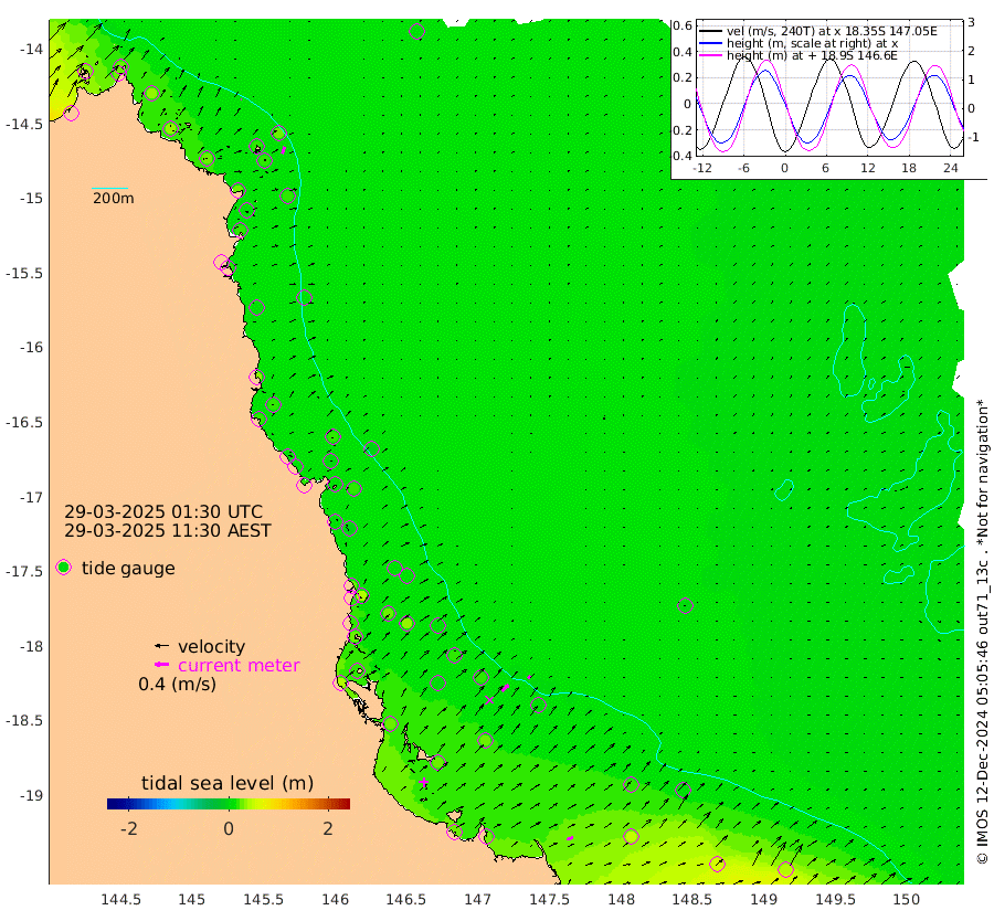 1cm/s -56T +11cm/s rms + 4cm/s -61T. GBRLSL 354m 21cm/s 19T +15cm/s rms + 2cm/s -84T. GBRLSH 32m 25cm/s 44T +15cm/s rms + 5cm/s -155T. GBRPPS 72m 10cm/s 41T +17cm/s rms + 13cm/s 115T. GBRMYR 223m 18cm/s 72T +18cm/s rms + 0cm/s -9T. NRSYON 29m 14cm Osprey Reef - West 31cm Stanley Island 27cm Pipon Islands 27cm Cape Melville 32cm Munro Reef 31cm Leggatt Island 41cm Normanby River 24cm Carter Reef 22cm Lizard Island (QLD) 28cm East Petherbridge Island 22cm North Direction Island 23cm Cape Flattery 17cm Ribbon Reef No.9 14cm Low Wooded Island 18cm Cape Bedford 18cm Endeavour River North 20cm Cooktown 12cm Cruiser Passage 13cm East Hope Island 32cm Bailay Creek 20cm Low Islets 20cm Port Douglas 13cm Palm Cove 14cm Yorkeys Knob 18cm Michaelmas Cay -3cm Euston Reef 21cm Cairns 5cm Green Island 13cm Fitzroy Island 15cm Sudbury Cay 9cm High Island -4cm Russell Island 12cm Peart Reef 13cm Nathan Reef 23cm Mourilyan Harbour 19cm Cowley Beach 44cm North Barnard Island 26cm Eddy Reef 33cm Beaver Reef 14cm Unnamed Reef No. 1 2cm Flinders Reef 22cm Clump Point 23cm Dunk Island 20cm Barnett Patches 22cm Goold Island 43cm Cardwell 7cm Britomart Reef 16cm Pith Reef 10cm Dip Reef 29cm Lucinda (Offshore) 27cm John Brewer Reef 25cm Albino Rock 22cm Shrimp Reef 12cm Jaguar Reef 28cm Townsville 24cm Cape Ferguson 46cm Stanley Reef 57cm Wallaby Reef 38cm Kennedy Reef